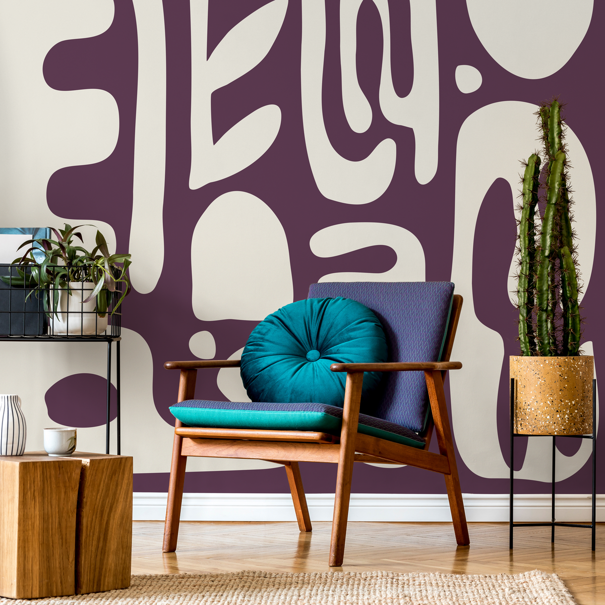 Mural de arte abstracto morado, papel tapiz moderno, autoadhesivo, decoración del hogar - D594