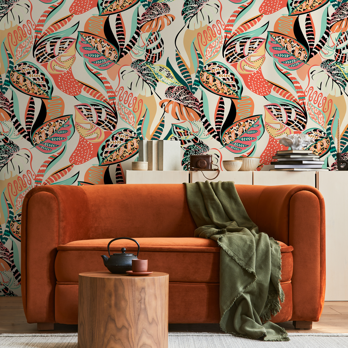 Papel tapiz autoadhesivo, papel tapiz removible, decoración del hogar, arte de pared, decoración de habitaciones, papel tapiz de hojas contemporáneo - C461