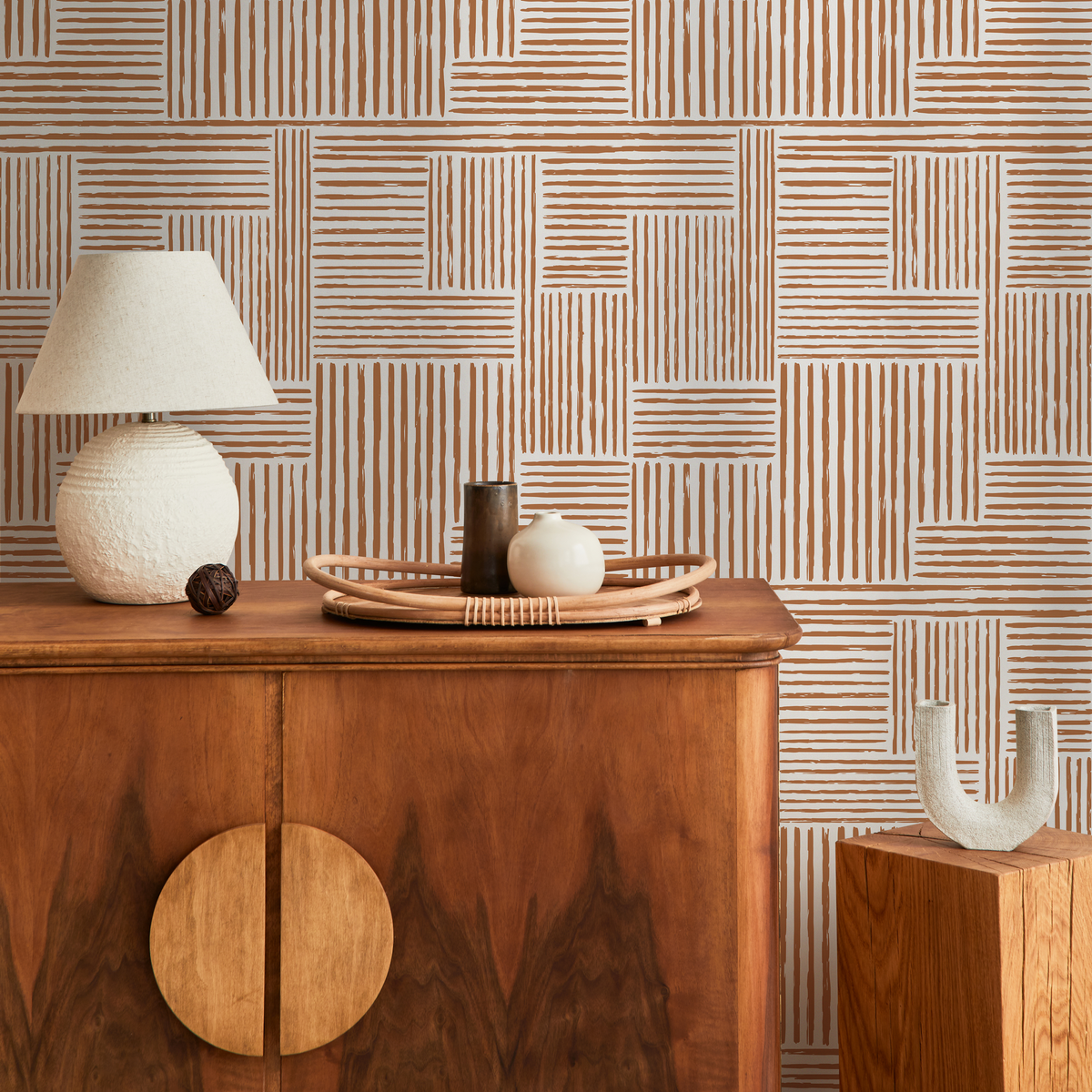 Papel pintado de líneas redondeadas sin costuras, autoadhesivo, extraíble y reposicionable, marrón, minimalista, con pinceladas abstractas claras, estilo bohemio moderno - ZAAH