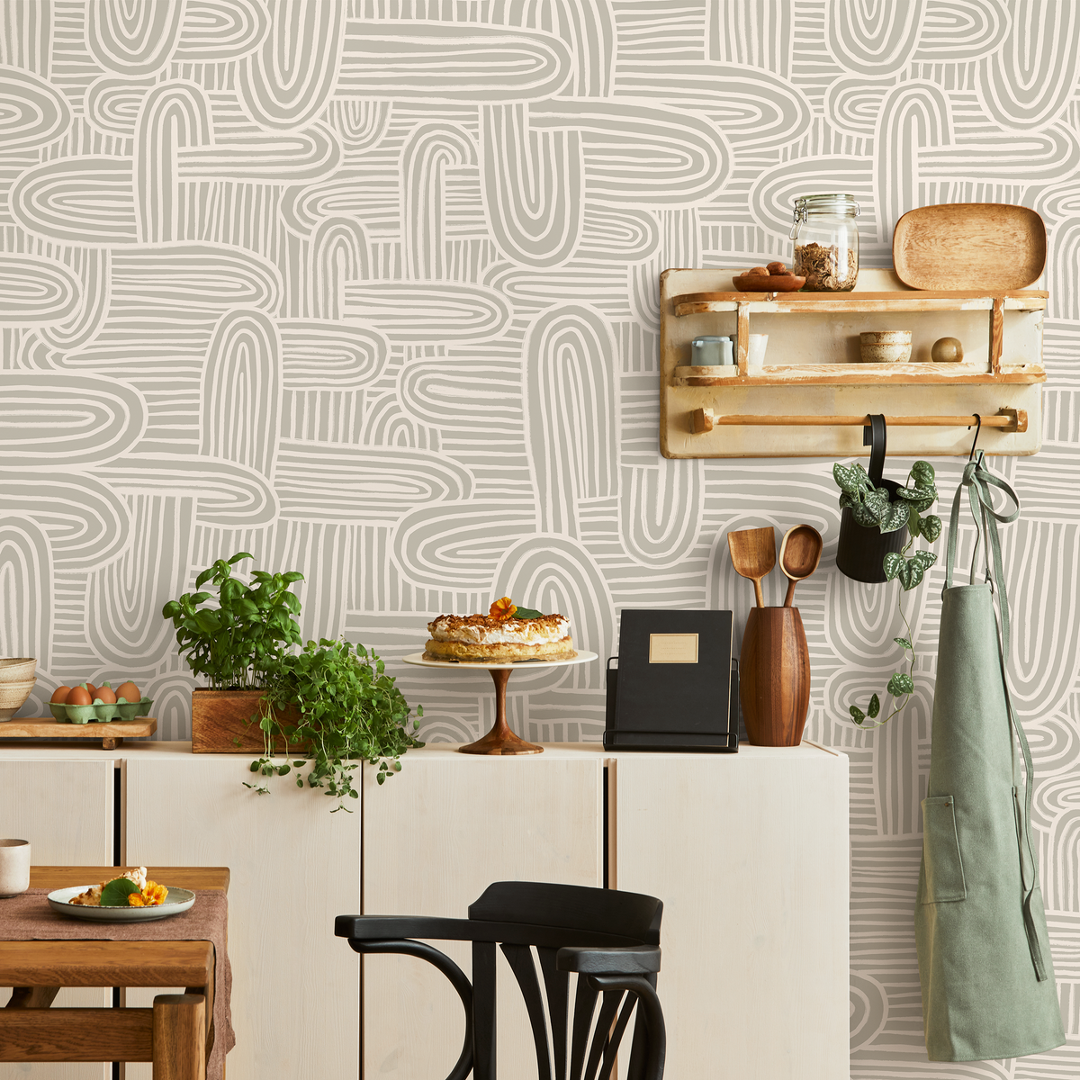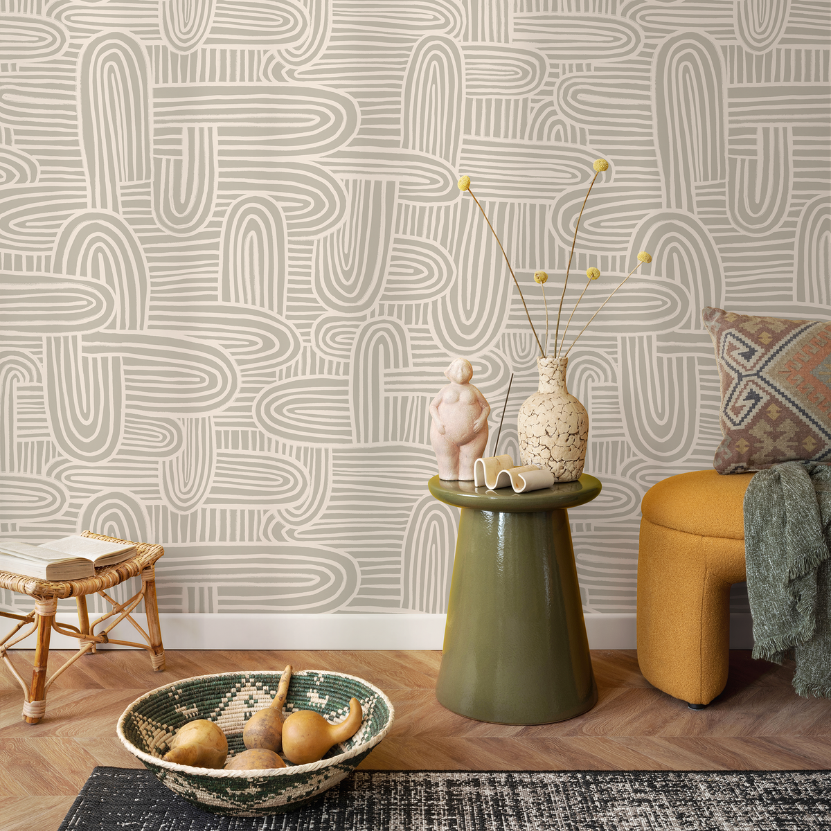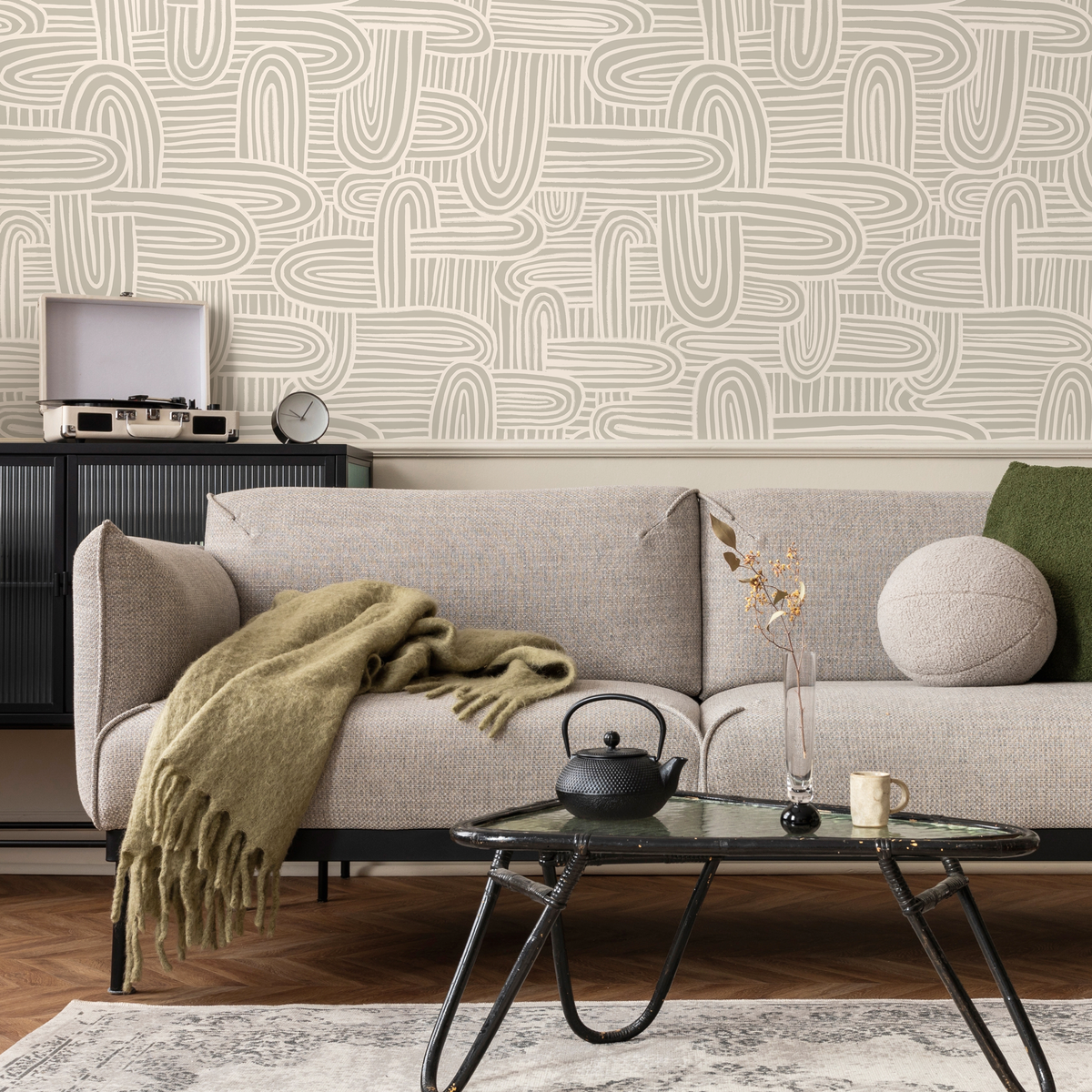 Papel pintado abstracto beige con pinceladas / Papel pintado autoadhesivo / Papel pintado extraíble / Decoración del hogar / Arte de pared / Decoración de habitación - C906