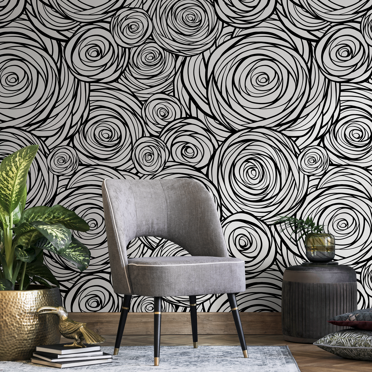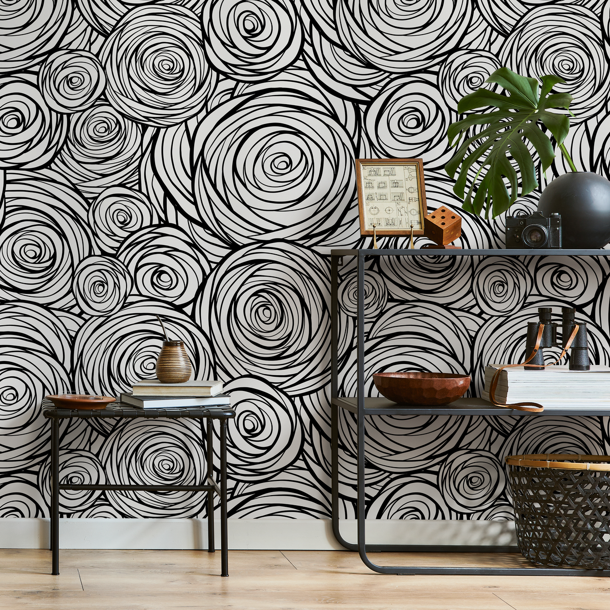 Papel pintado autoadhesivo, papel pintado extraíble, decoración del hogar, arte de pared, decoración de habitaciones, papel pintado abstracto en blanco y negro - B691