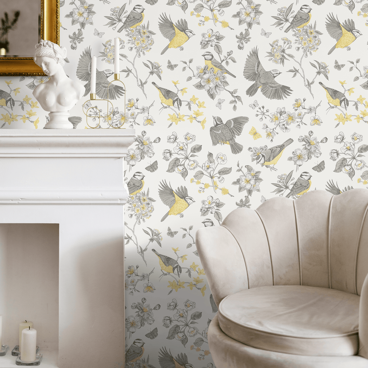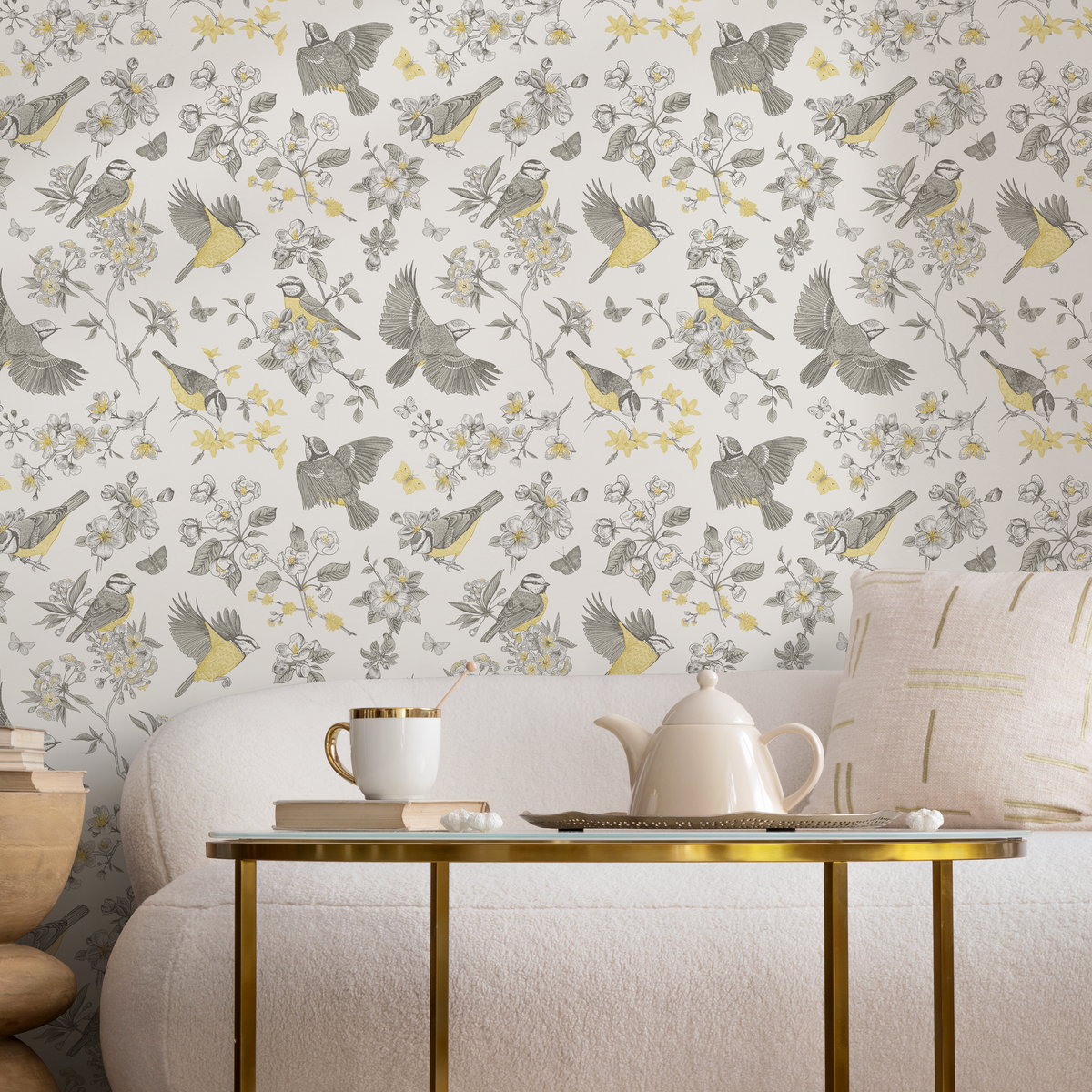 Papel pintado vintage con diseño de pájaros y flores, autoadhesivo, removible, para decoración del hogar, arte de pared, decoración de habitaciones - C697