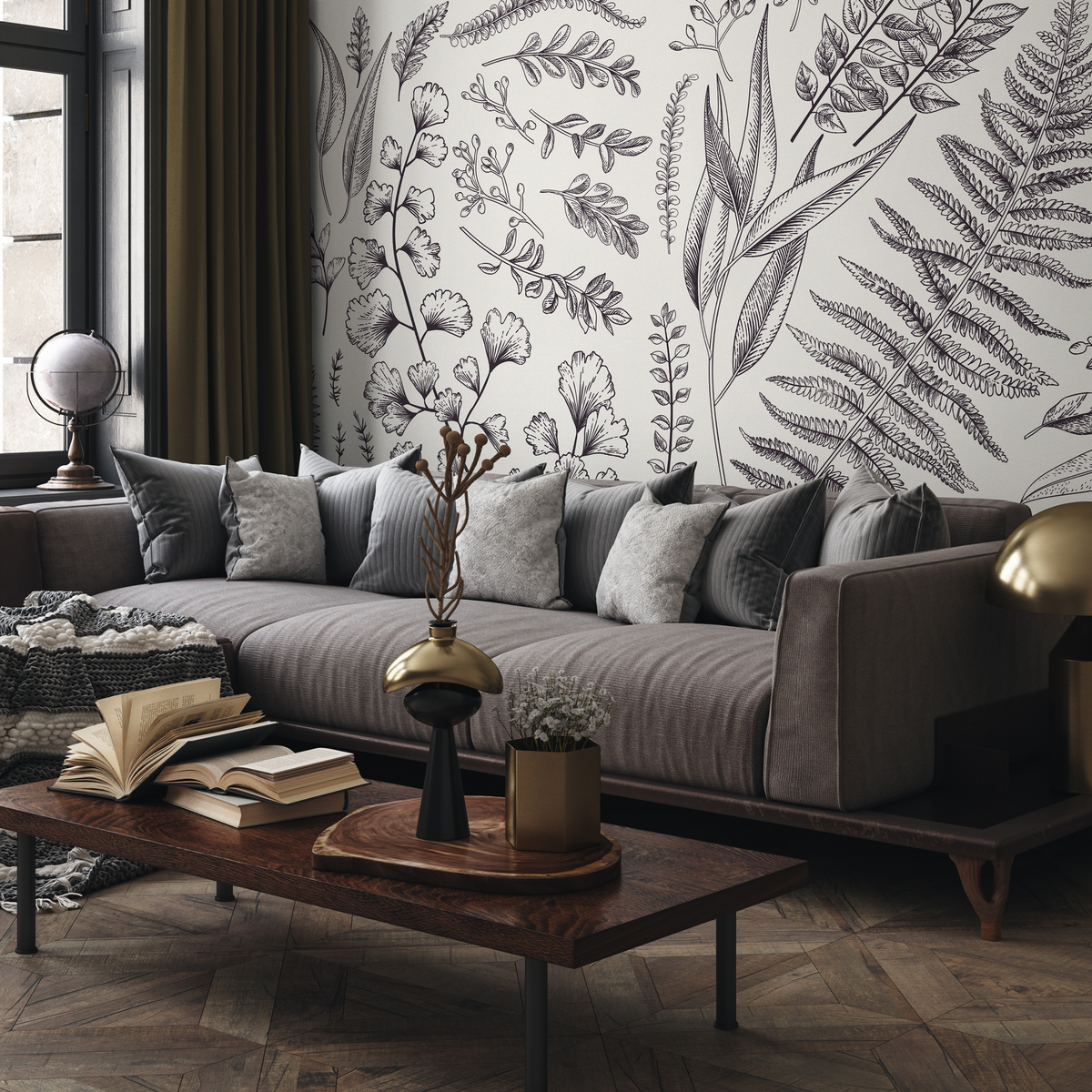 Papel pintado autoadhesivo, papel pintado extraíble, decoración de pared, decoración del hogar, arte de pared imprimible, decoración de habitación, papel pintado de hojas - C042