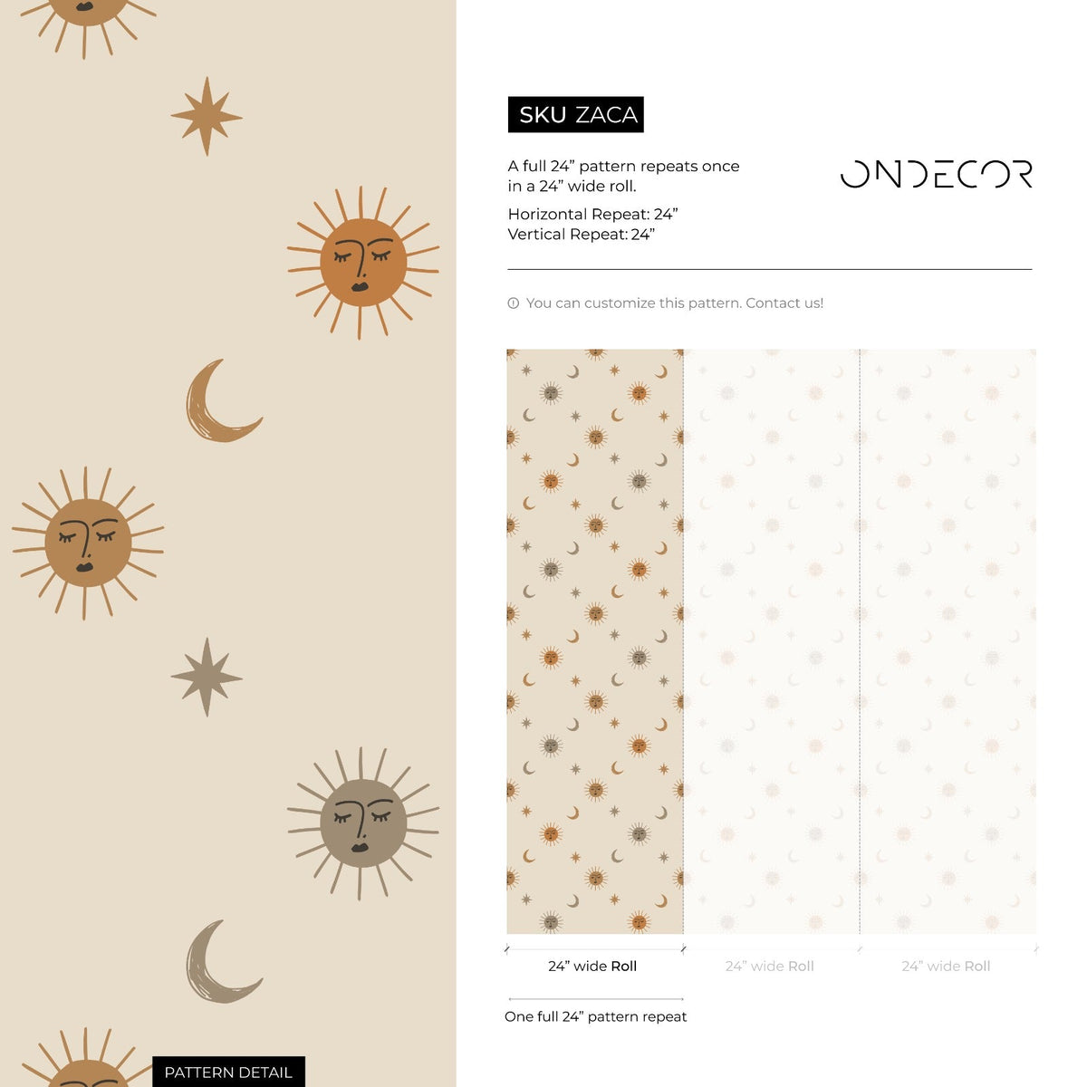 Papel tapiz autoadhesivo de sol y luna, papel tapiz autoadhesivo de constelación mística bohemia - ZACA