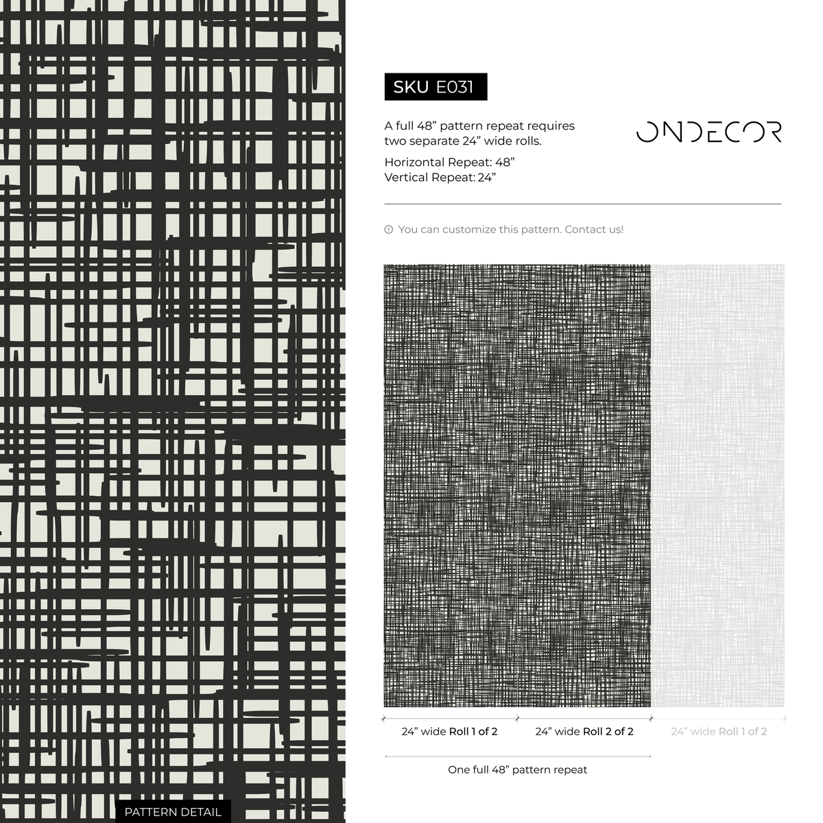 Abstract Wallpaper with a Textured Crosshatch Motif in Black and Off-White - E031