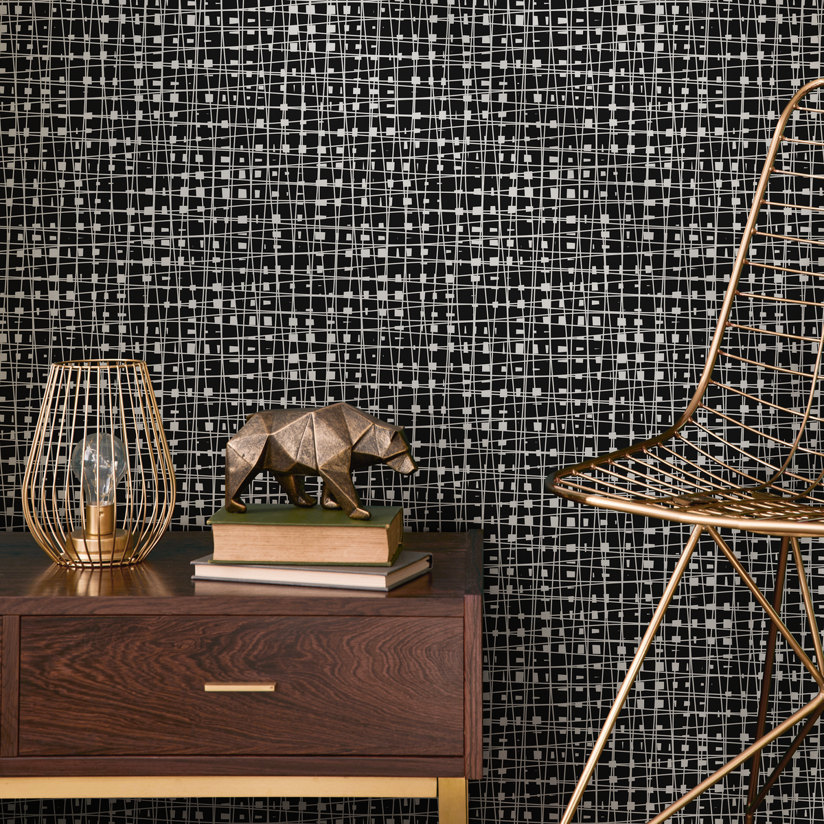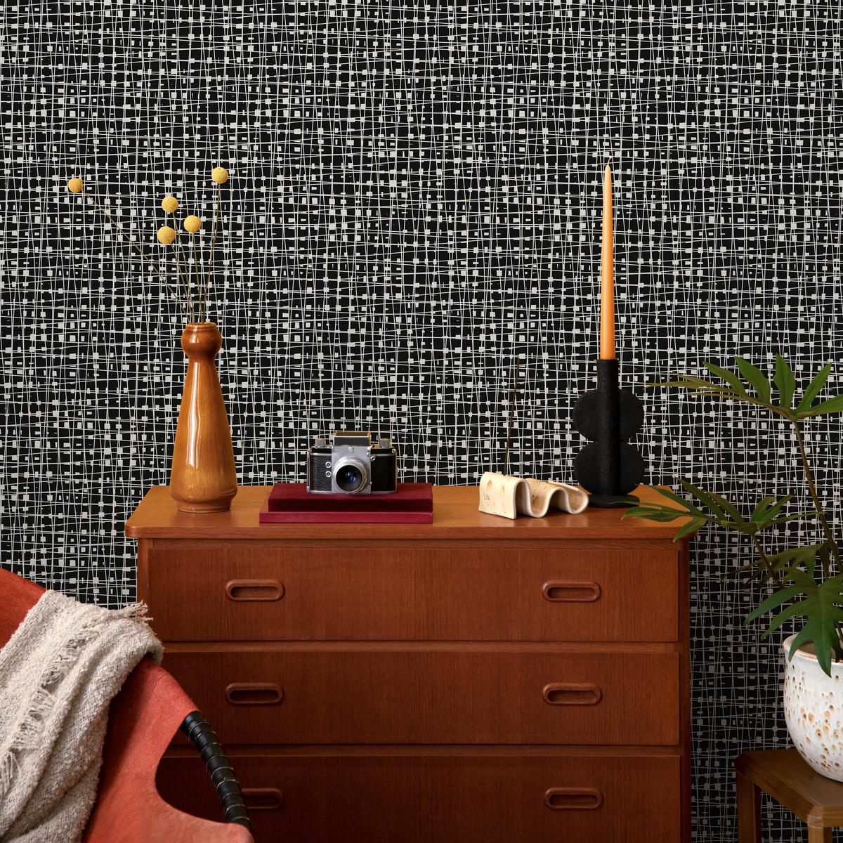 Crafted for effortless style updates, this removable wallpaper is a game-changer for both homeowners and renters. The easy installation process, available in peel and stick or traditional options, allows you to refresh your space without commitment or mess. Ideal for modern interior design schemes, this abstract grid wallpaper serves as the perfect wall art for a living room, office, or bedroom. Its versatile black and white palette ensures it complements a wide range of furnishings and color schemes, making it a timeless choice for your home.