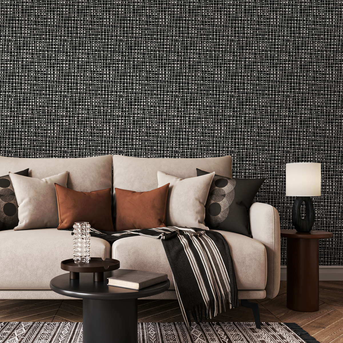 Introduce a bold, modern statement with our Abstract Wallpaper, featuring an irregular grid motif. This stunning black and white design brings a dynamic and sophisticated touch to any interior, perfect for creating a visually captivating accent wall or transforming an entire room. The intricate, hand-drawn feel of the woven lines offers a unique texture that elevates your home decor from ordinary to extraordinary, blending minimalist principles with artistic expression.