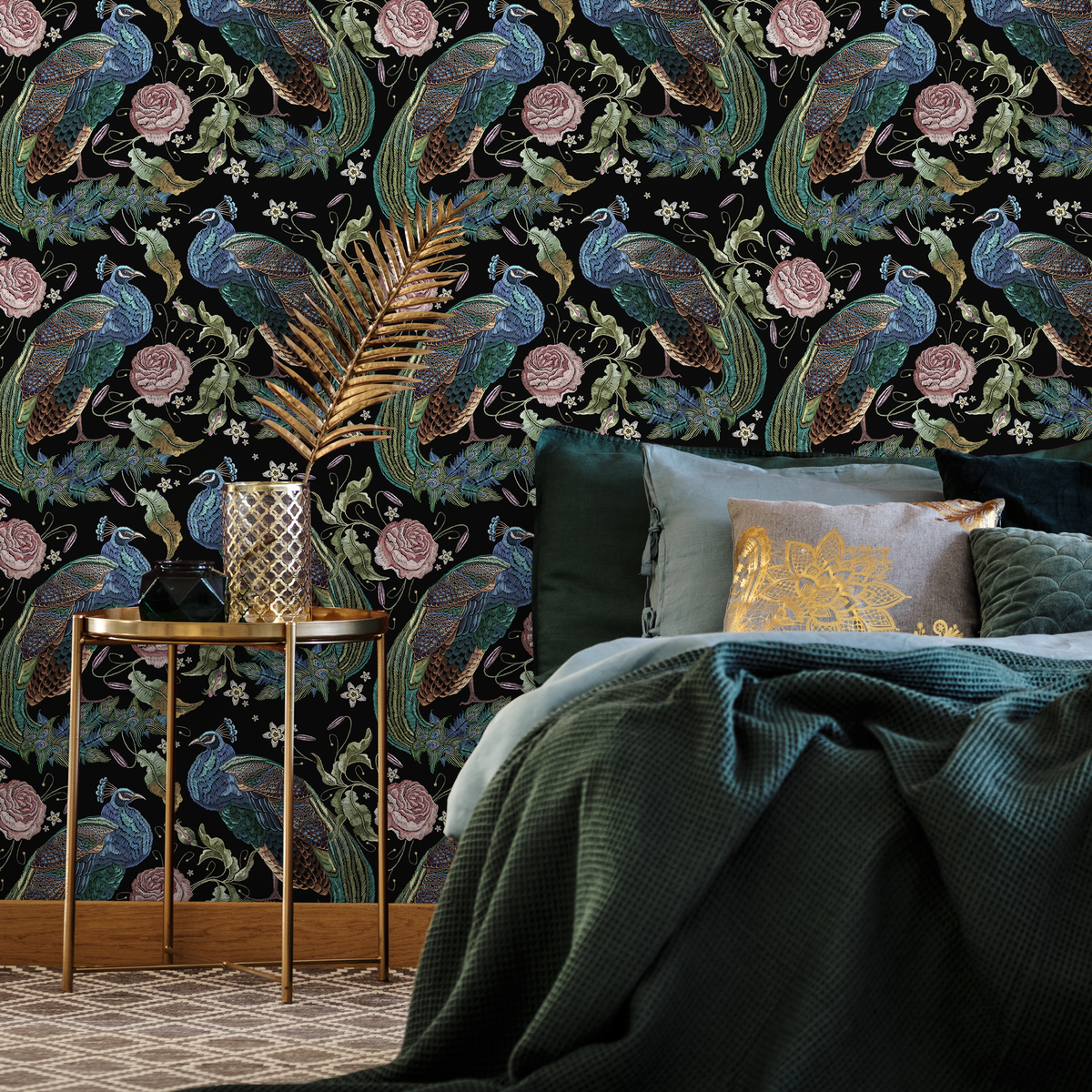 Papel pintado floral oscuro, papel pintado de pavo real, papel pintado autoadhesivo y papel pintado tradicional - D884