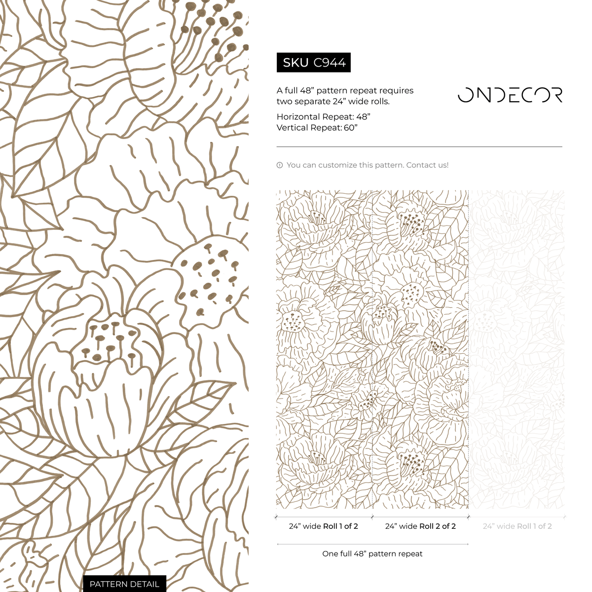 Papel pintado floral bohemio con dibujos a mano / Papel pintado autoadhesivo / Papel pintado extraíble / Decoración del hogar / Arte de pared / Decoración de habitación - C944