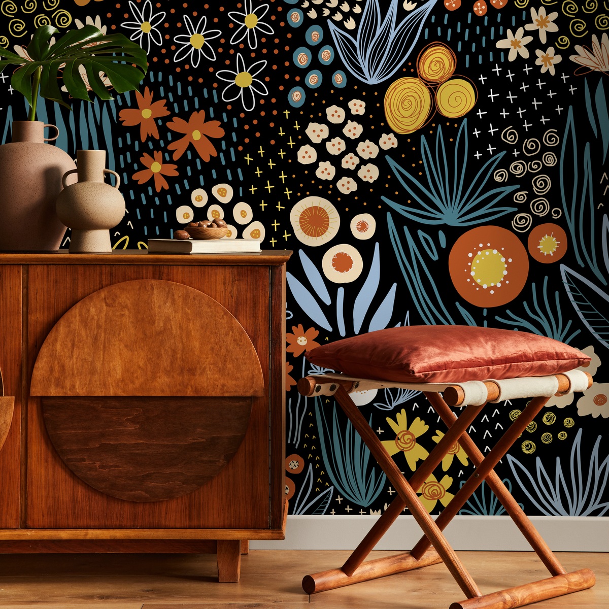 Papel pintado de jardín floral oscuro / Papel pintado autoadhesivo / Papel pintado removible / Decoración del hogar / Arte de pared / Decoración de habitaciones - D168