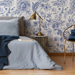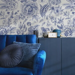 Papel pintado floral vintage azul, autoadhesivo y tradicional - C359
