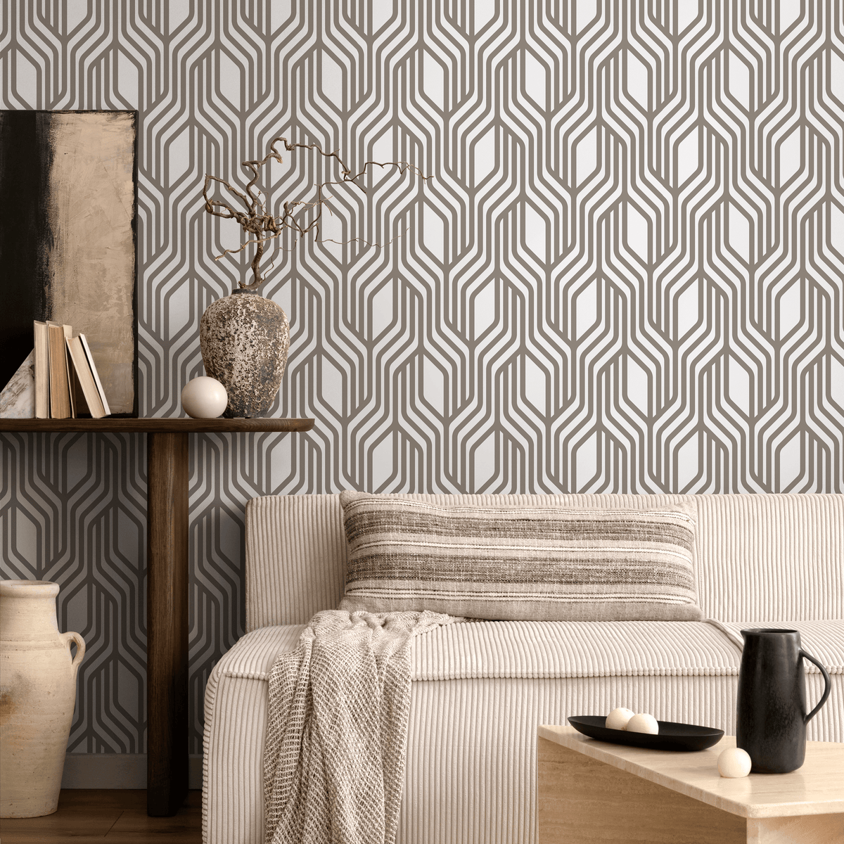 Papel pintado autoadhesivo, papel pintado extraíble, decoración del hogar, arte de pared, decoración de habitaciones, beige geométrico - C287
