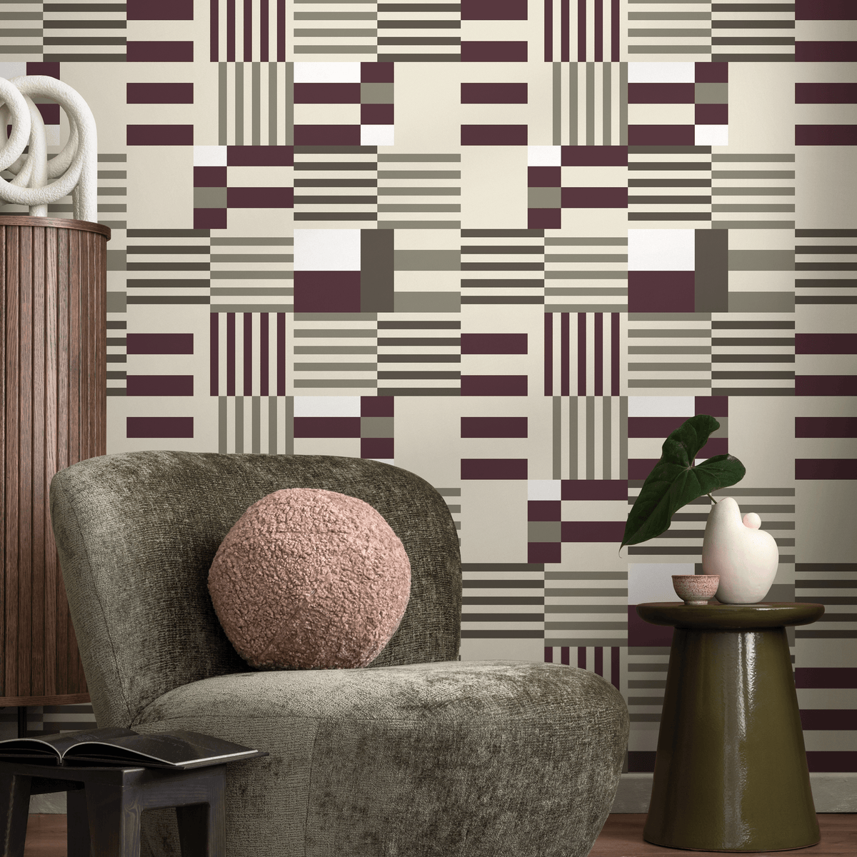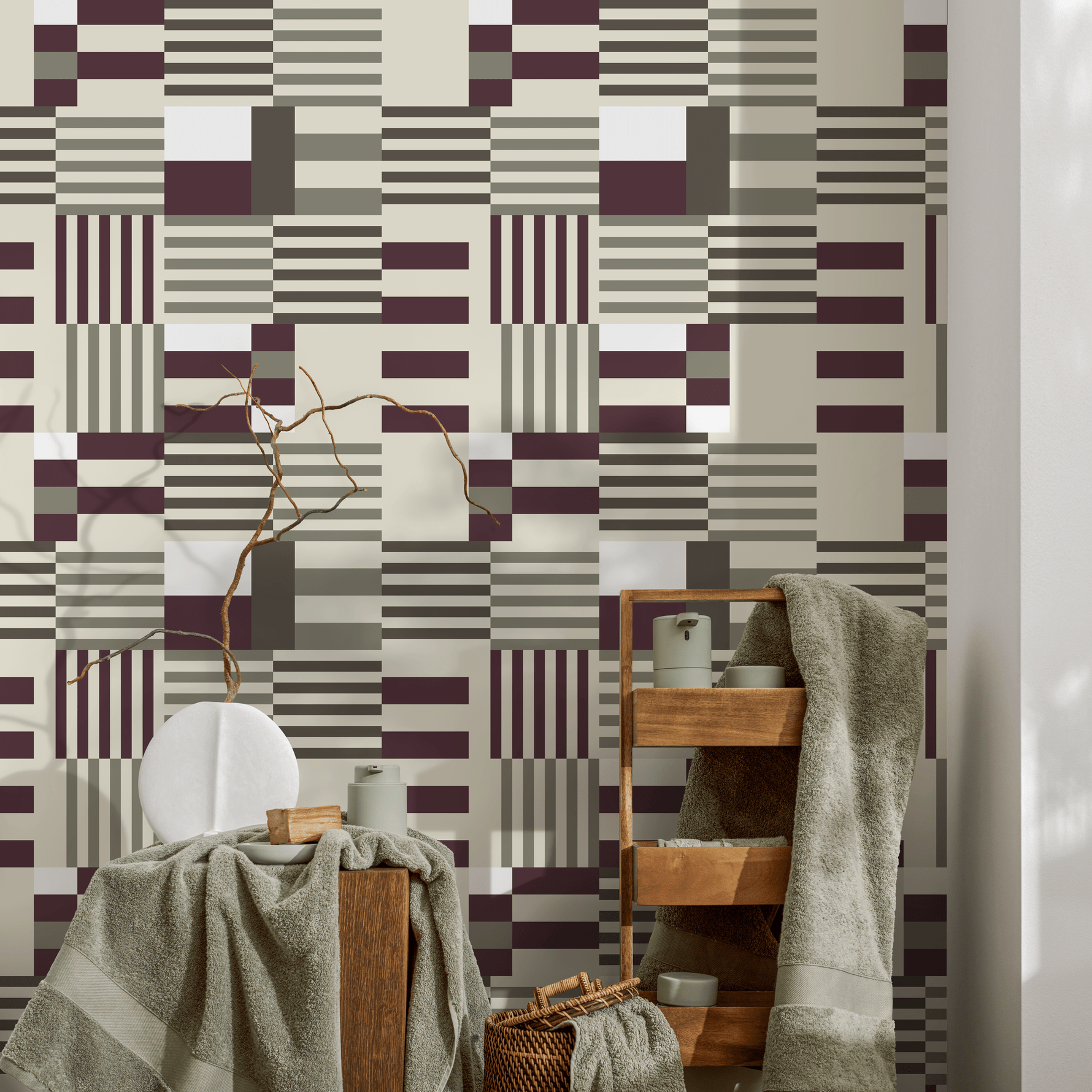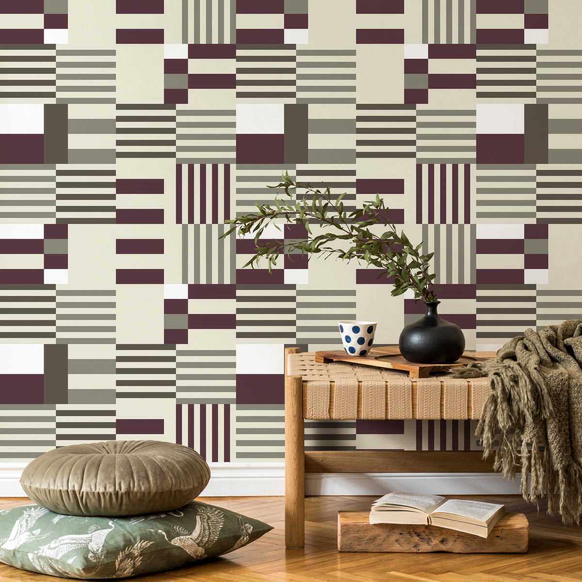 Papel pintado geométrico moderno gris y morado, autoadhesivo y tradicional - D846