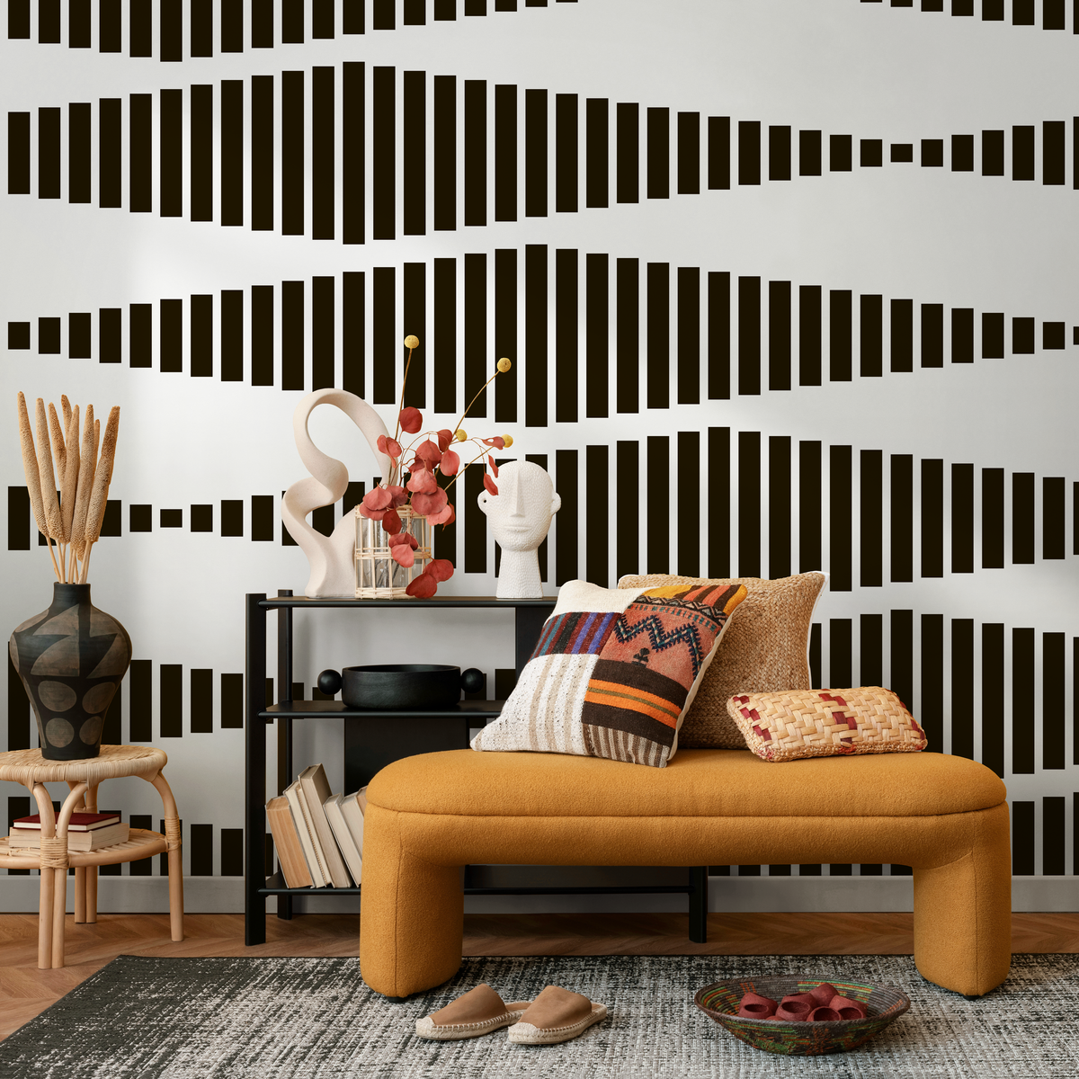 Papel pintado geométrico escandinavo en blanco y negro, extraíble y autoadhesivo - B339