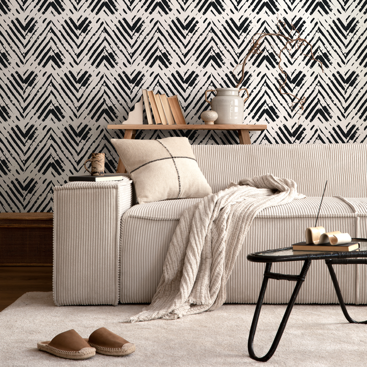 Papel tapiz autoadhesivo, papel tapiz removible, decoración del hogar, decoración de paredes, decoración de habitaciones / Papel tapiz de espiga en blanco y negro - A953