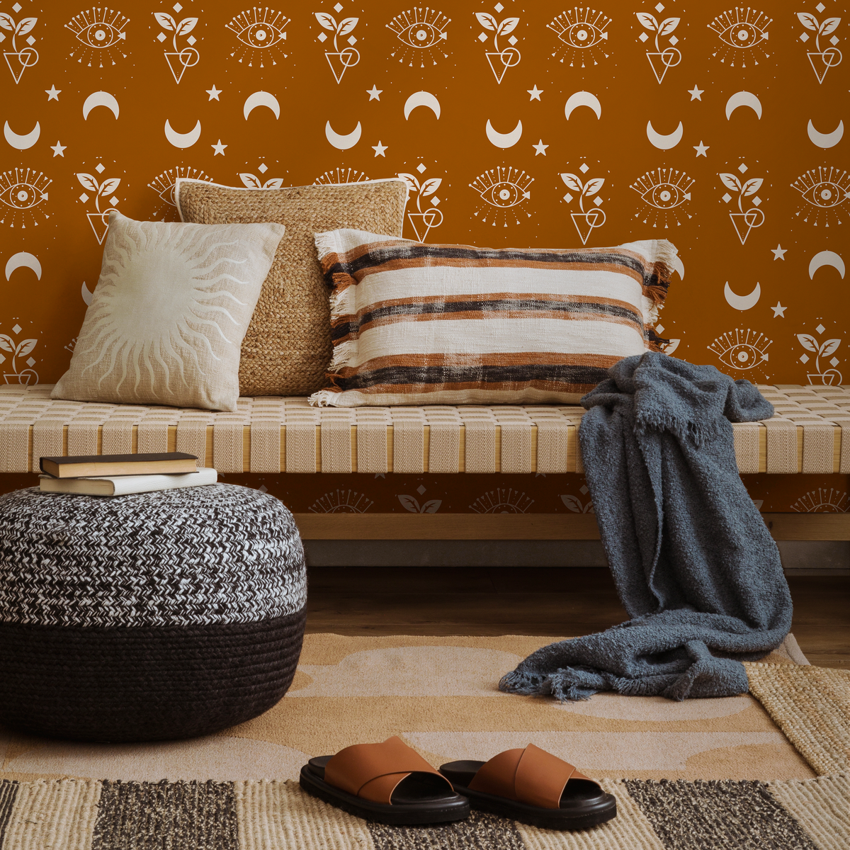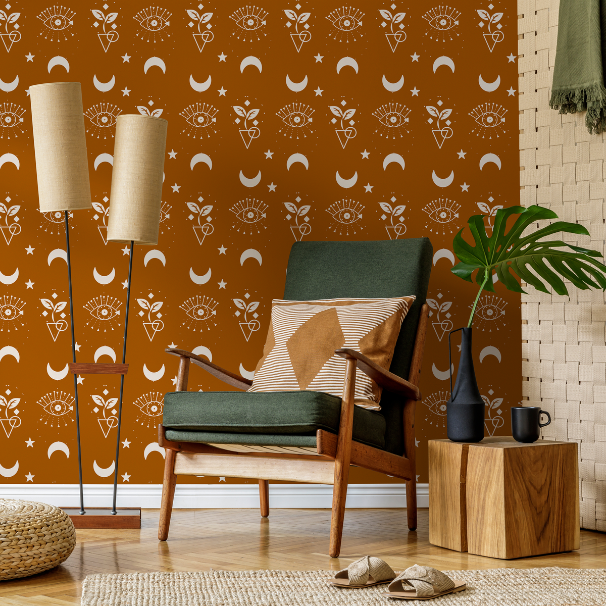 Papel pintado marrón místico y celestial, papel pintado autoadhesivo despegable, papel pintado autoadhesivo Luna y Sol - ZAAZ
