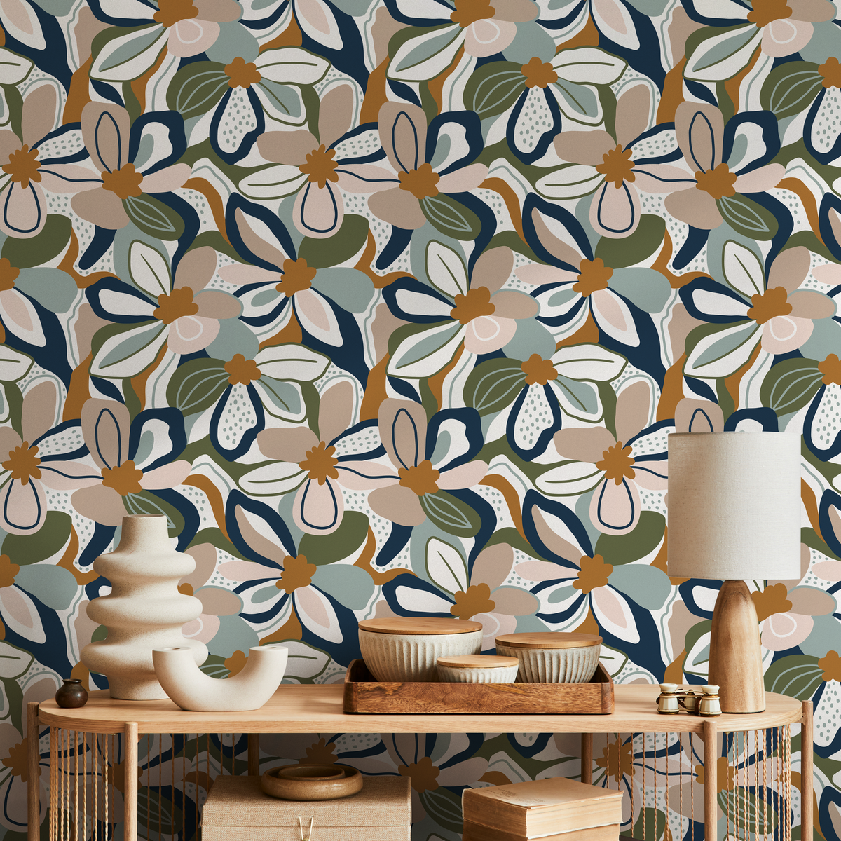 Papel pintado floral retro, divertido, autoadhesivo y tradicional - D657