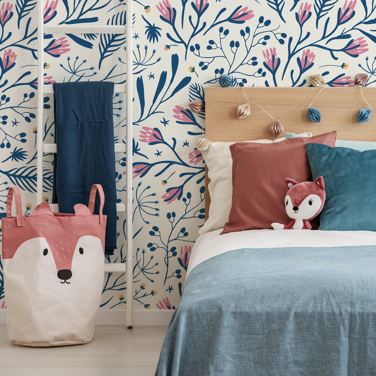 Papel pintado escandinavo con diseño floral azul, autoadhesivo, extraíble, para decoración del hogar, arte de pared, decoración de habitaciones - D279