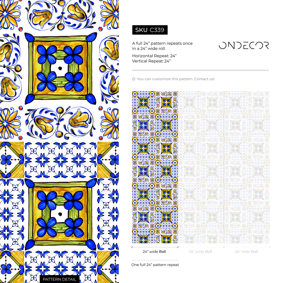 Papel pintado autoadhesivo, papel pintado extraíble, decoración del hogar, arte de pared, decoración de habitaciones, azulejos, papel pintado de acuarela - C339