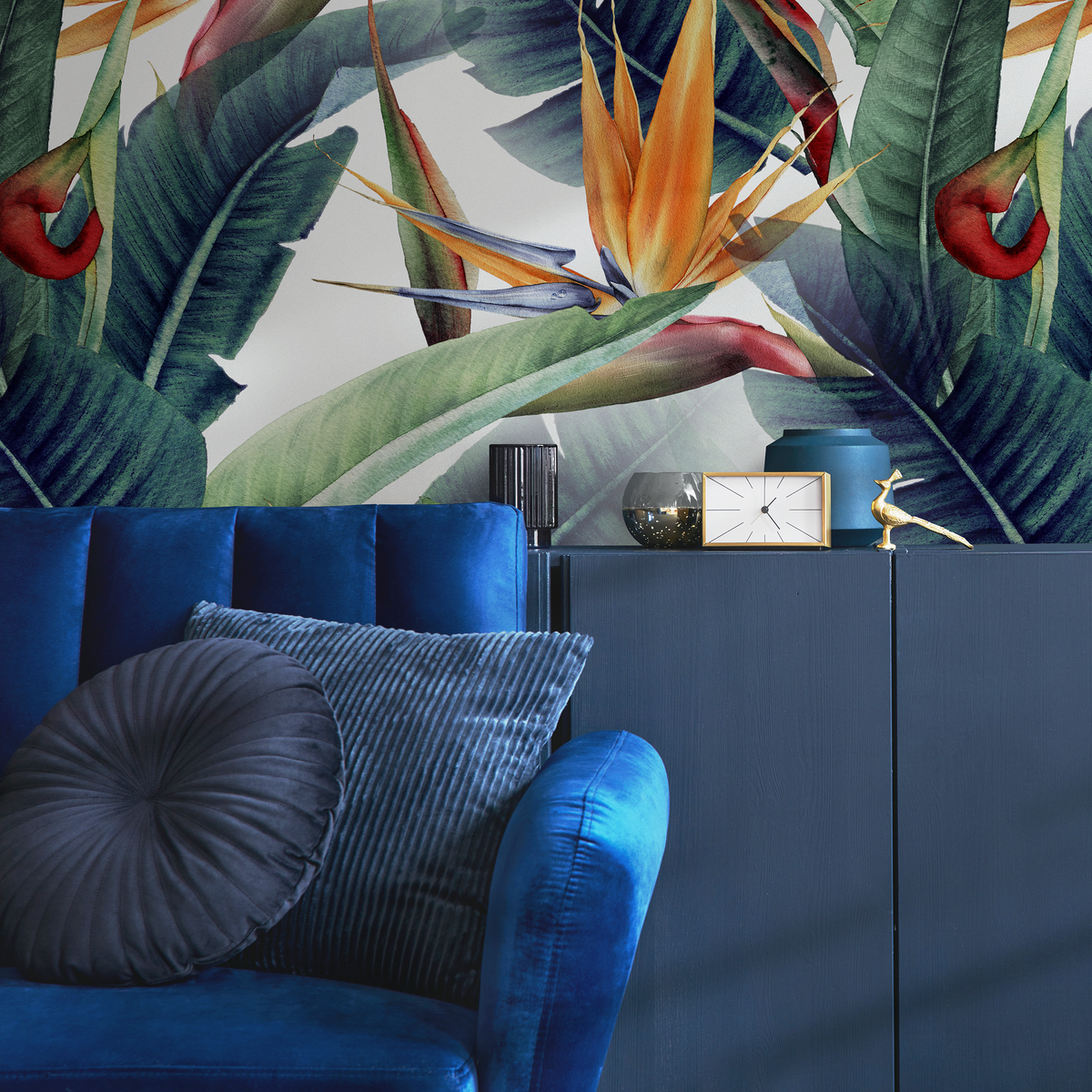 Papel pintado con diseño de ave del paraíso con flores tropicales, autoadhesivo y tradicional - B037