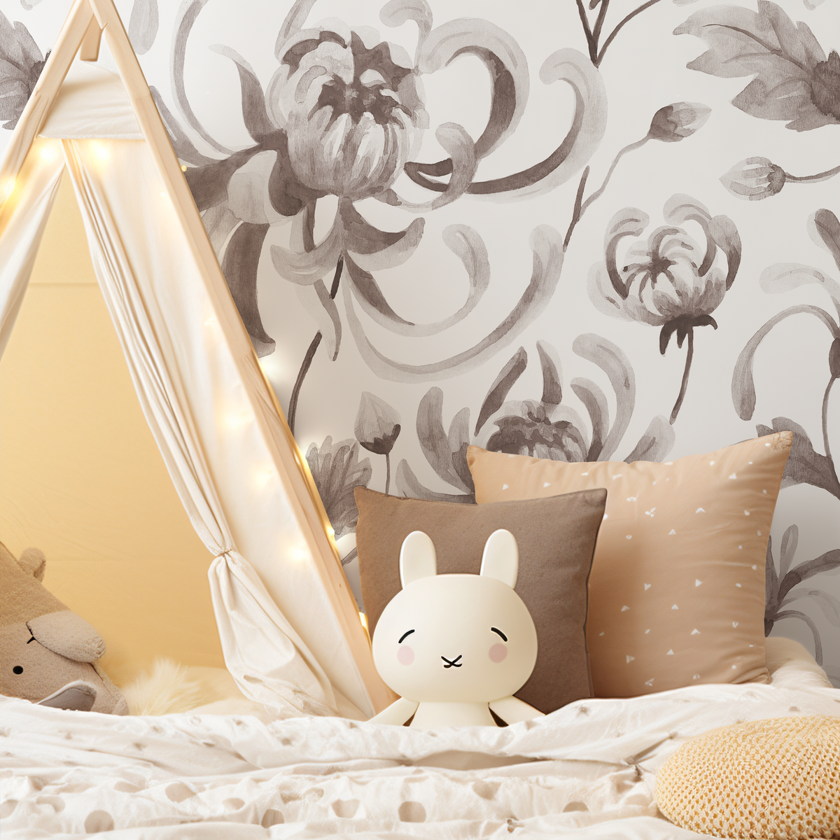 Papel pintado floral vintage gris / Papel pintado autoadhesivo, papel pintado extraíble, decoración del hogar, arte de pared, decoración de habitaciones - C955
