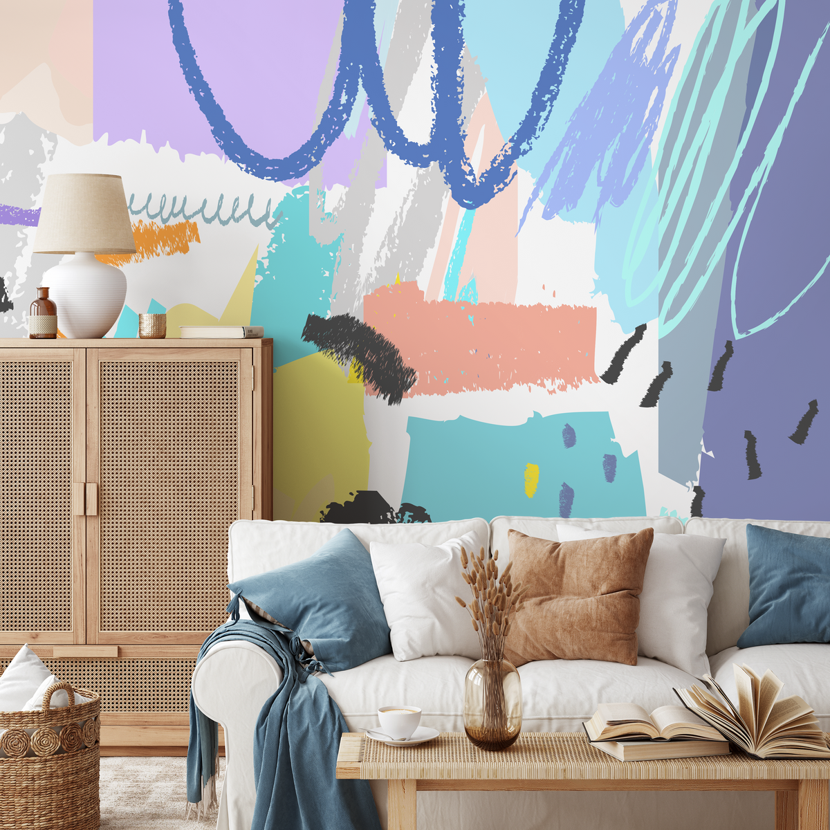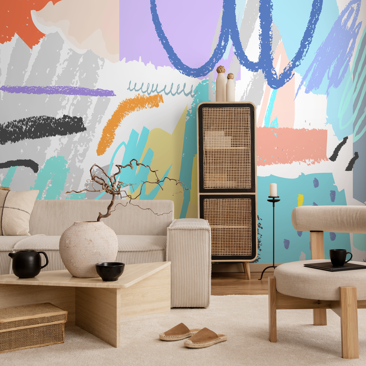 Papier peint décoratif mural, papier peint autocollant, papier peint amovible, décoration d'intérieur, art mural abstrait, papier peint contemporain - B166