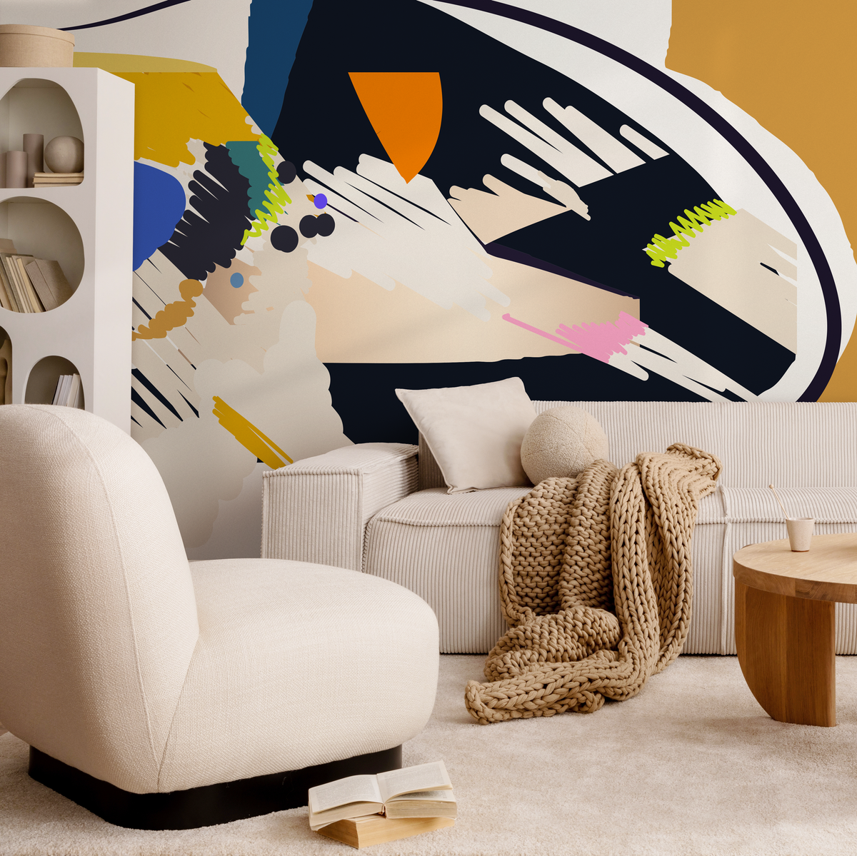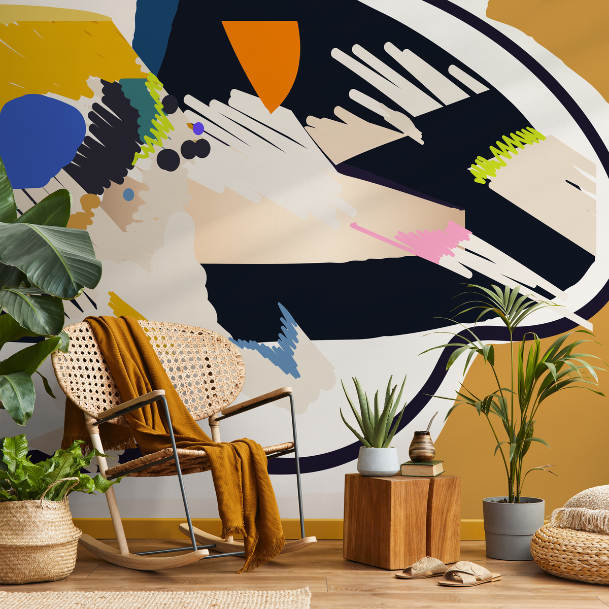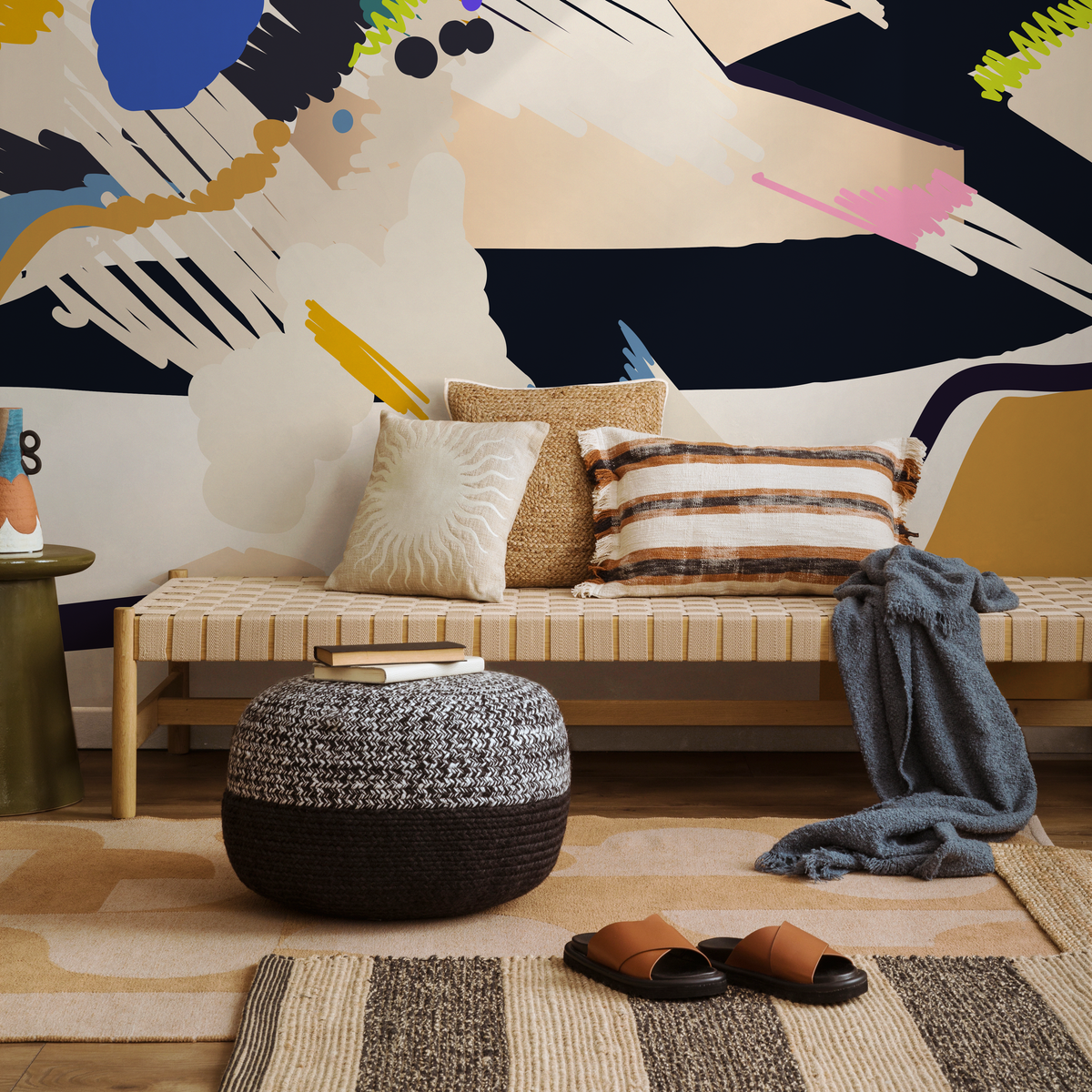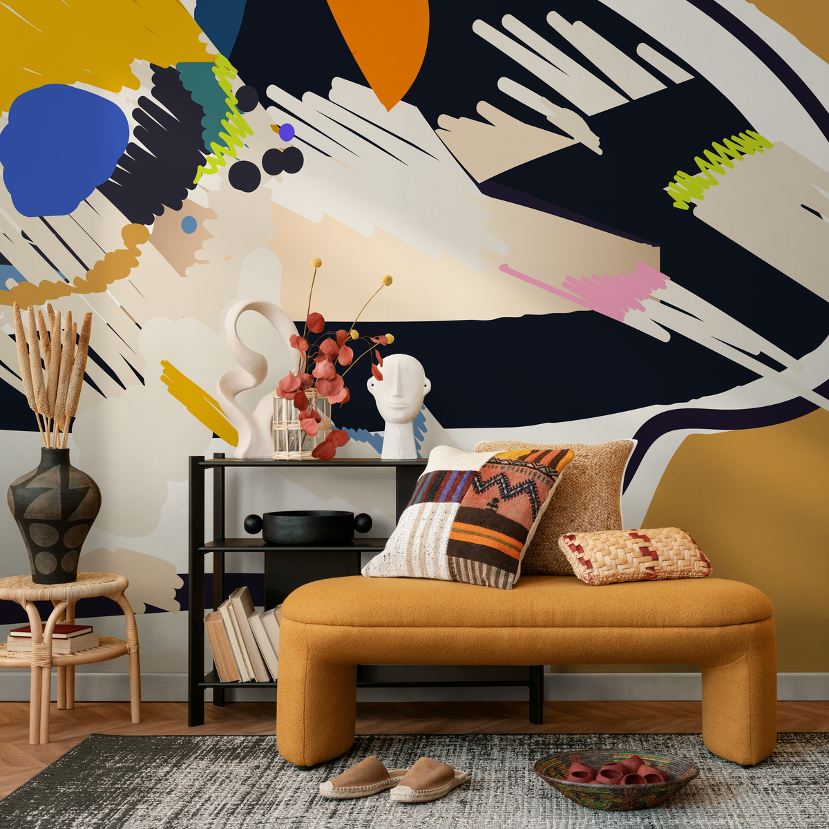 Papier peint autocollant amovible, décoration d'intérieur, art mural, décoration de chambre, papier peint mural abstrait bohème - C449