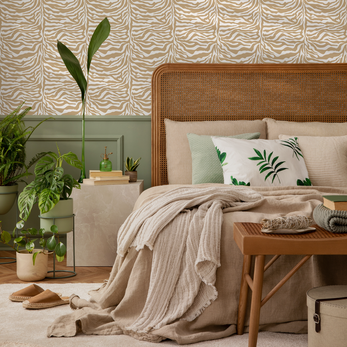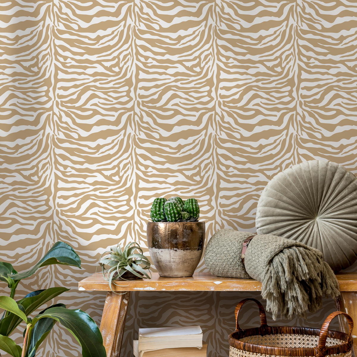 Papier peint zèbre abstrait beige / Papier peint autocollant amovible Décoration d'intérieur Art mural Décoration murale Décoration de chambre - C772