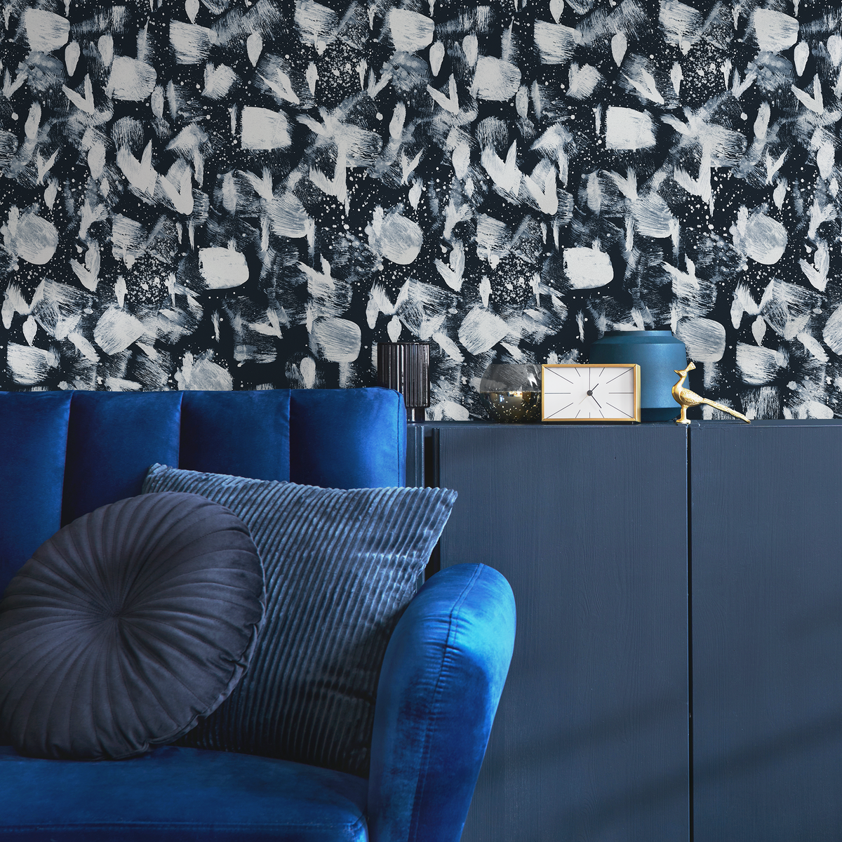 Papier peint bleu marine peint à la main / Papier peint autocollant amovible Décoration d'intérieur Art mural Décoration murale Décoration de chambre - C884