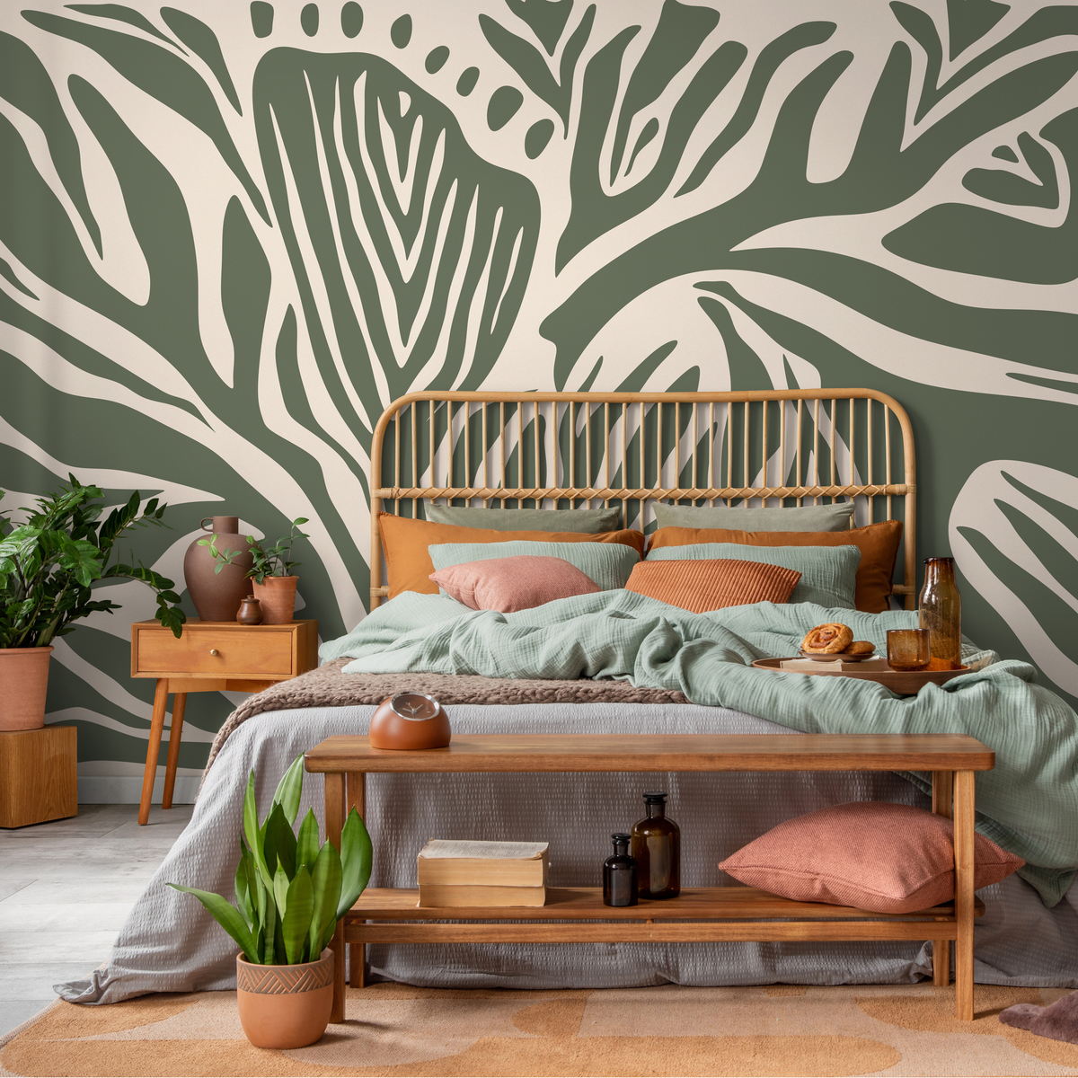 Papier peint abstrait vert olive, style contemporain, autocollant et traditionnel - D691
