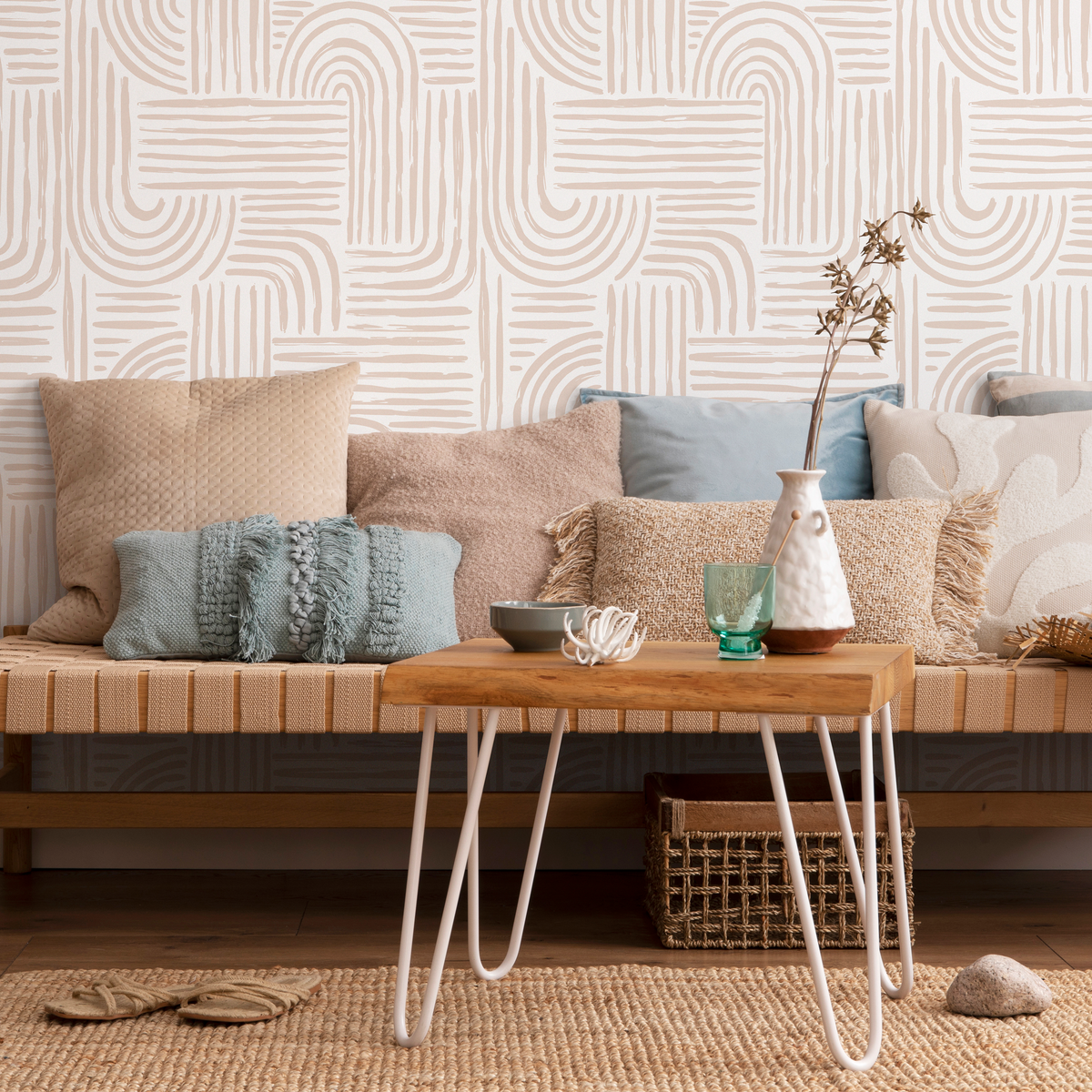 Papier peint à lignes arrondies sans couture, amovible, repositionnable, neutre, minimaliste, léger, abstrait, coups de pinceau, bohème moderne - ZAAD