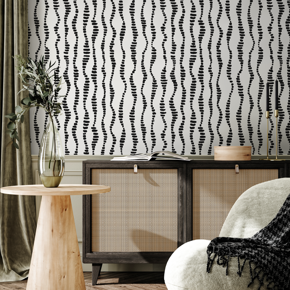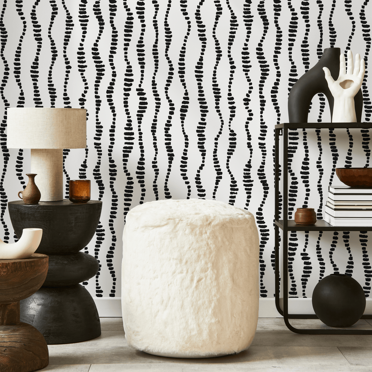 Papier peint autocollant amovible, décoration d'intérieur, art mural, décoration murale, décoration de chambre / Papier peint bohème noir et blanc - C535