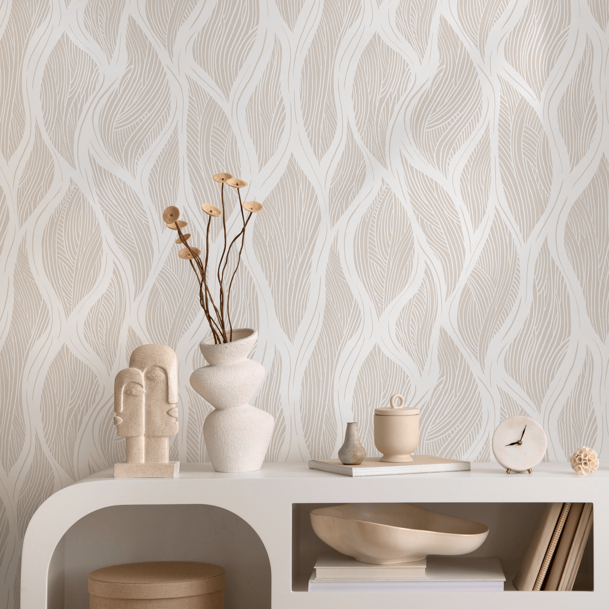Papier peint beige à motif feuilles abstraites / Papier peint autocollant amovible Décoration d'intérieur Art mural Décoration murale Décoration de chambre - C627