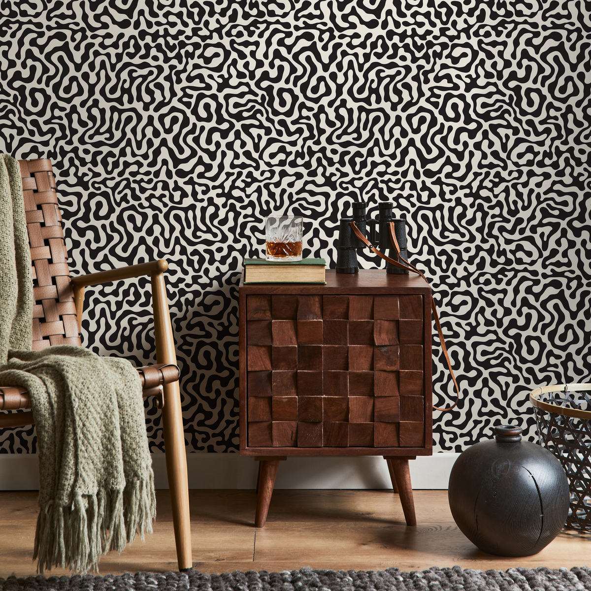 Papier peint autocollant amovible, décoration d'intérieur, art mural, décoration murale, décoration de chambre / Papier peint abstrait noir et blanc - B601