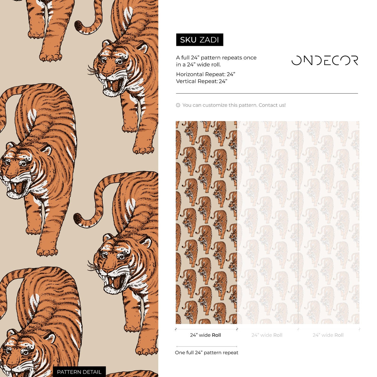 Papier peint amovible motif tigre bohème, papier peint repositionnable à motif animalier - ZADI