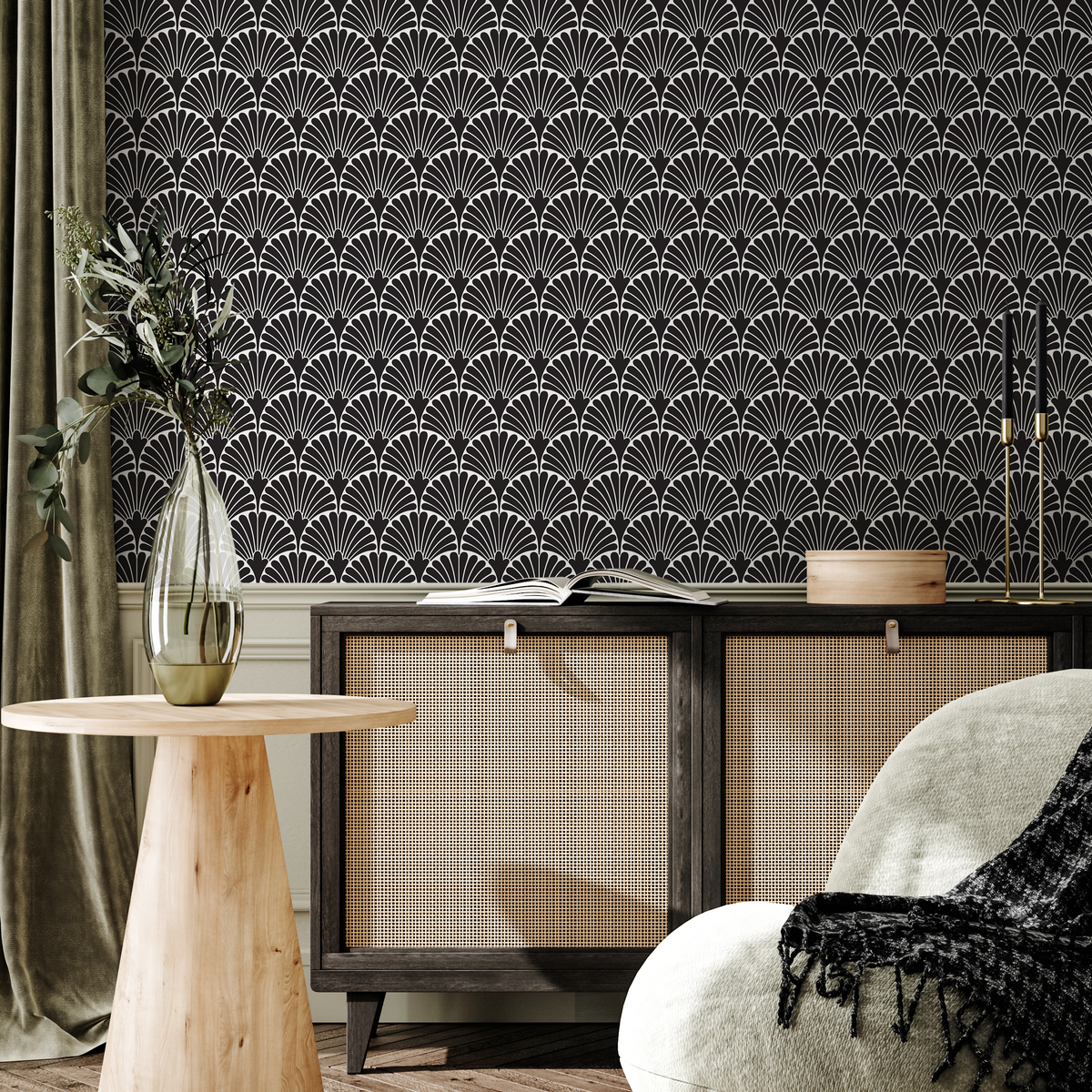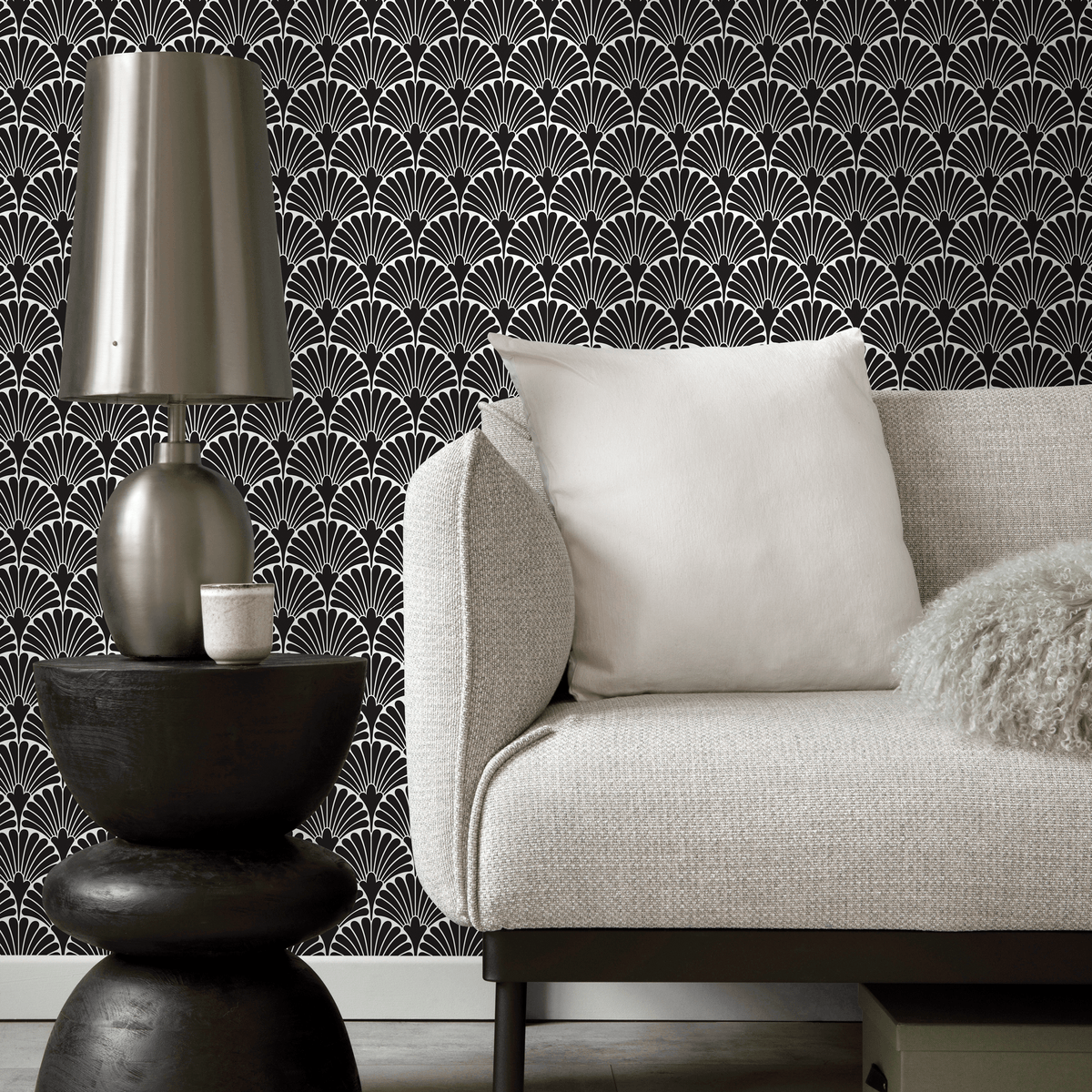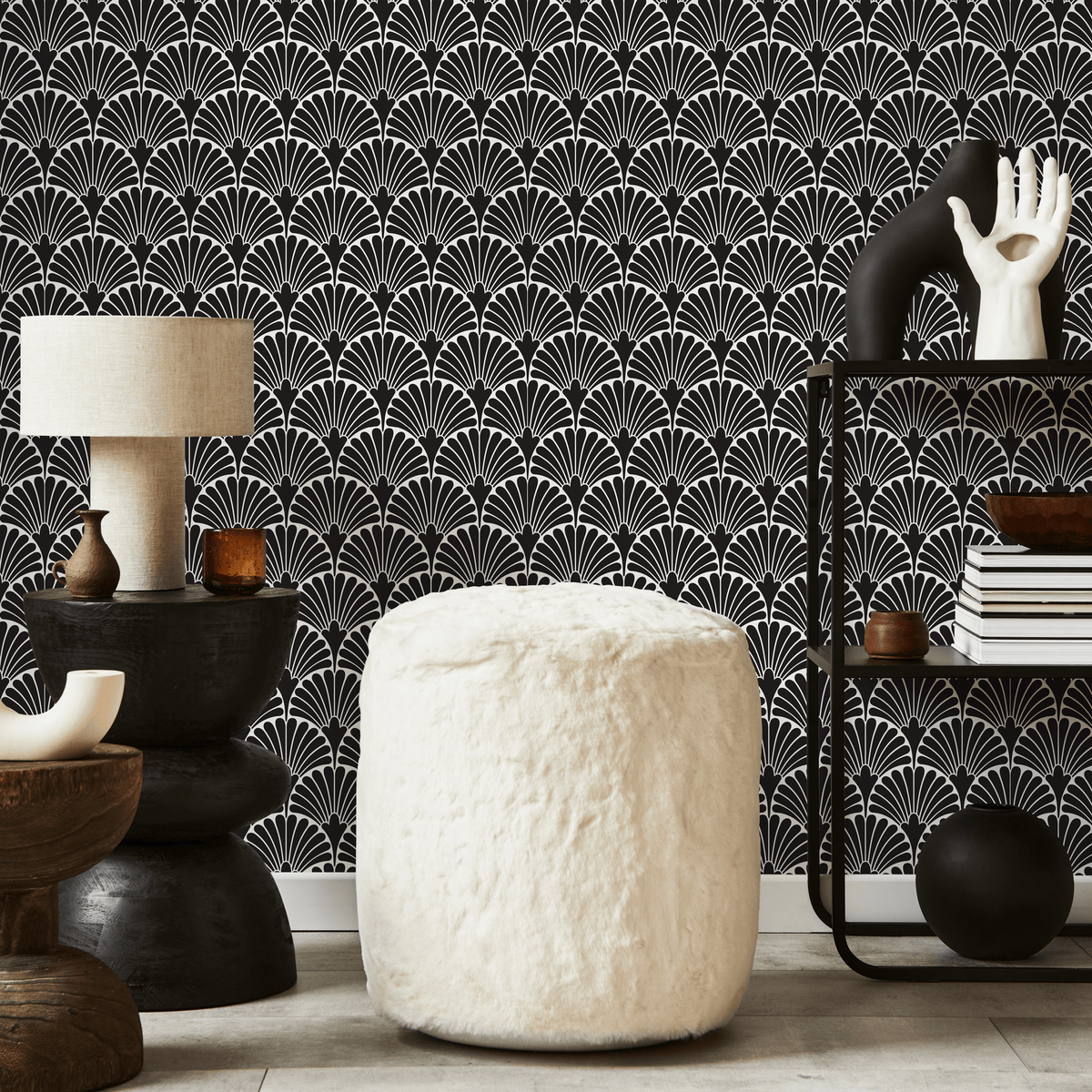 Papier peint autocollant amovible, décoration d'intérieur, art mural, décoration de chambre / Papier peint Art déco noir et blanc - C365
