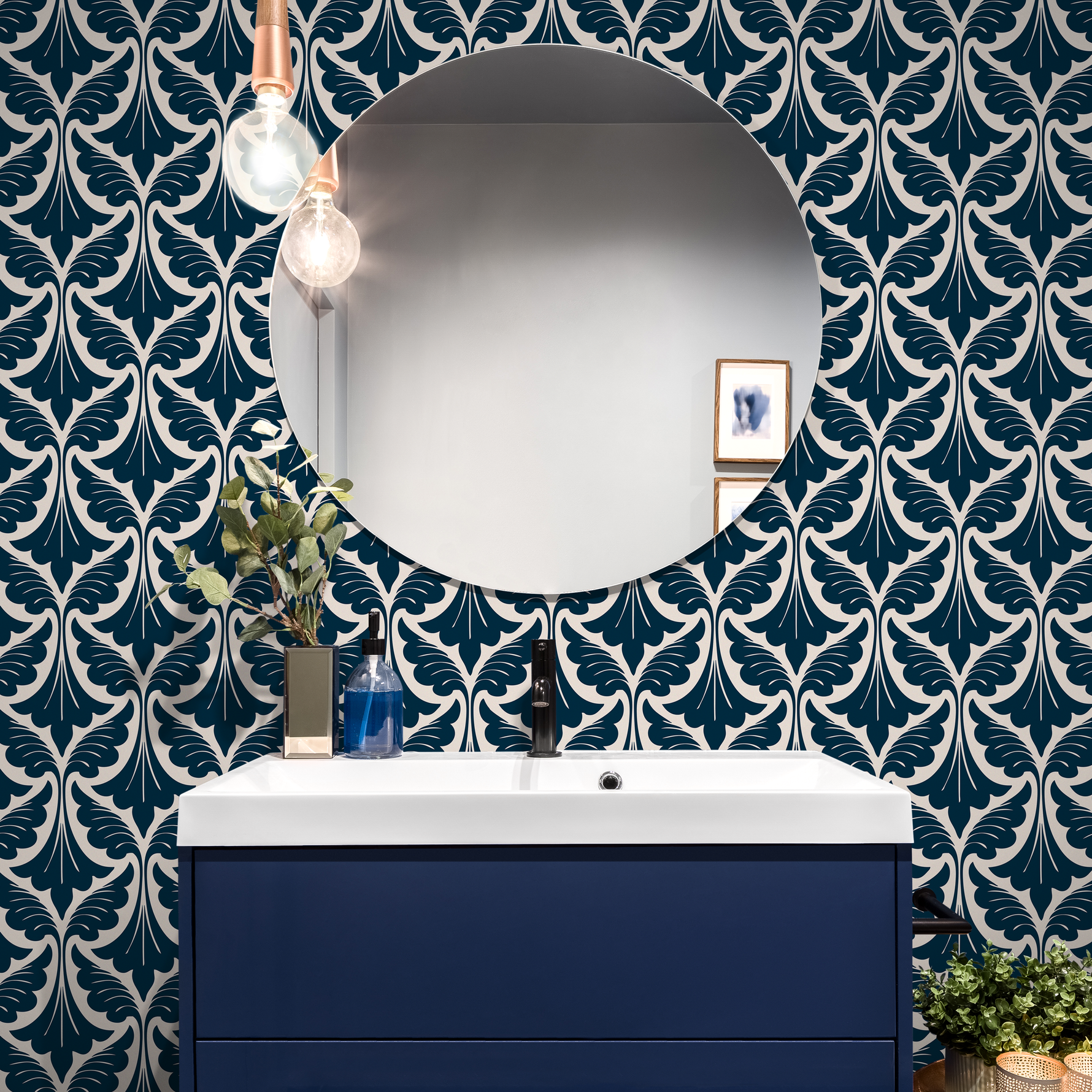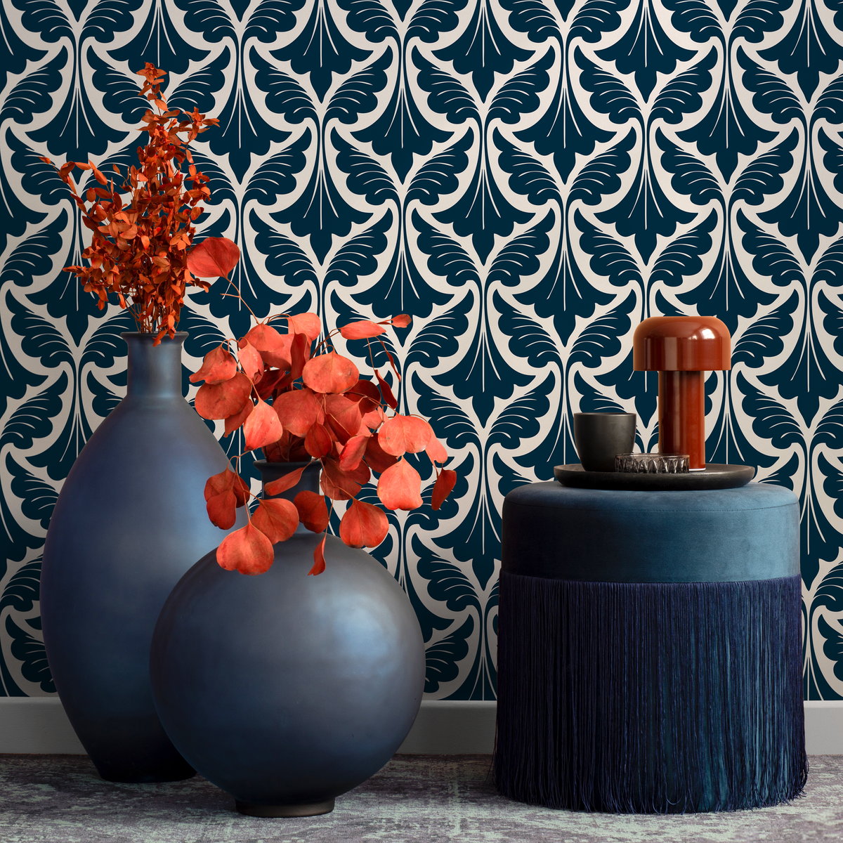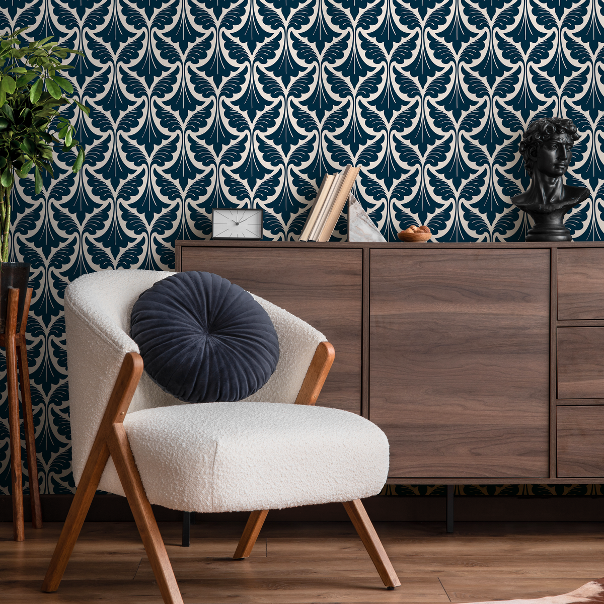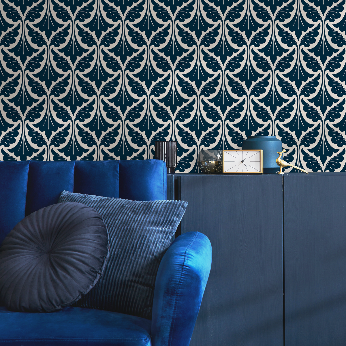 Papier peint autocollant amovible, décoration d'intérieur, art mural, décoration de chambre / Papier peint Art déco bleu marine - C429