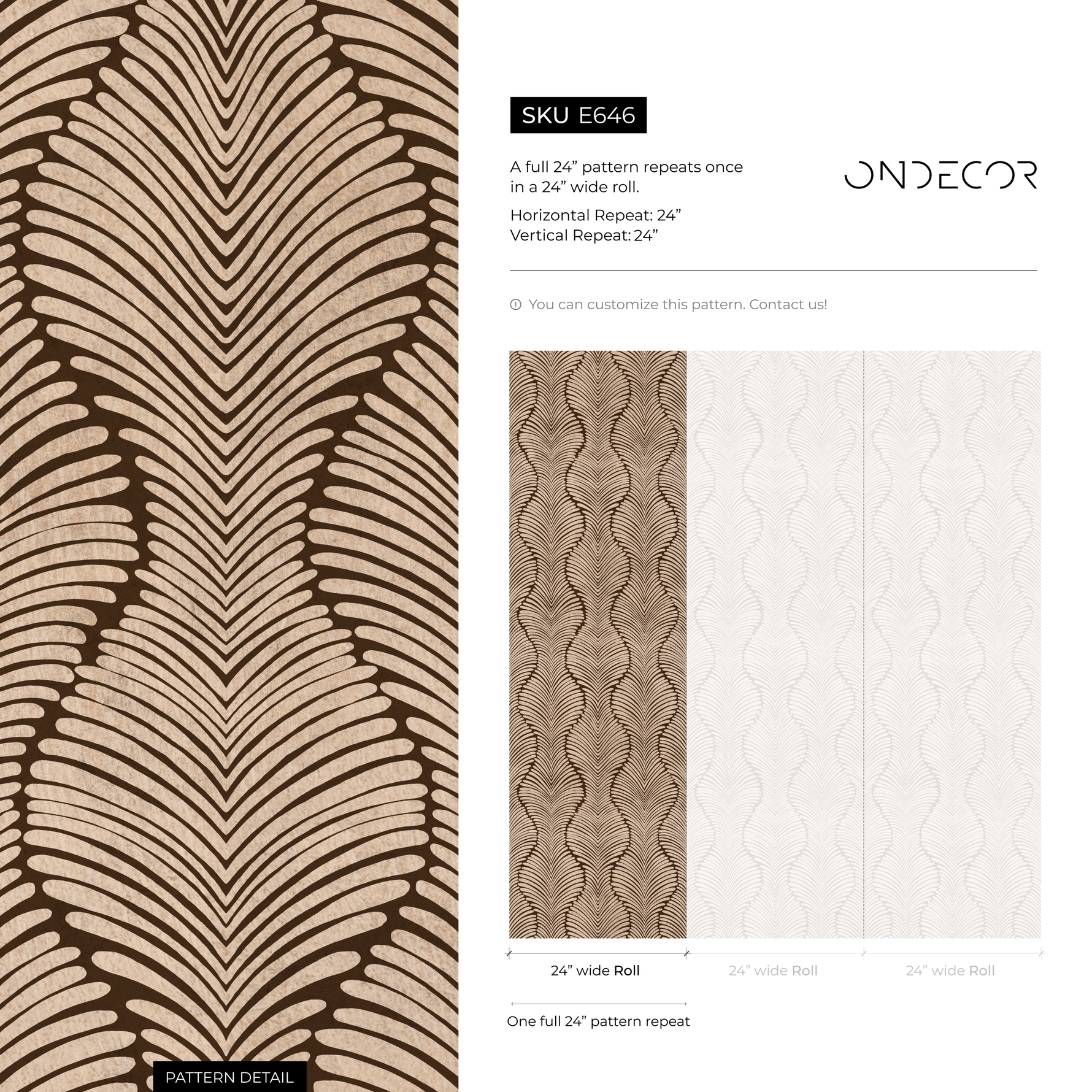 Art Deco Wallpaper with a Scalloped Feather Motif in Brown and Beige - E646