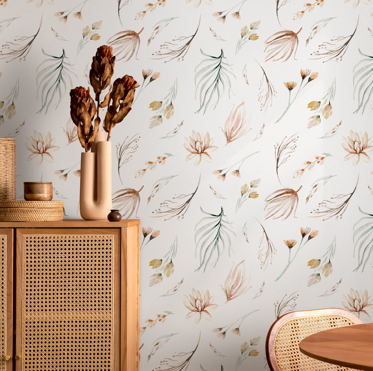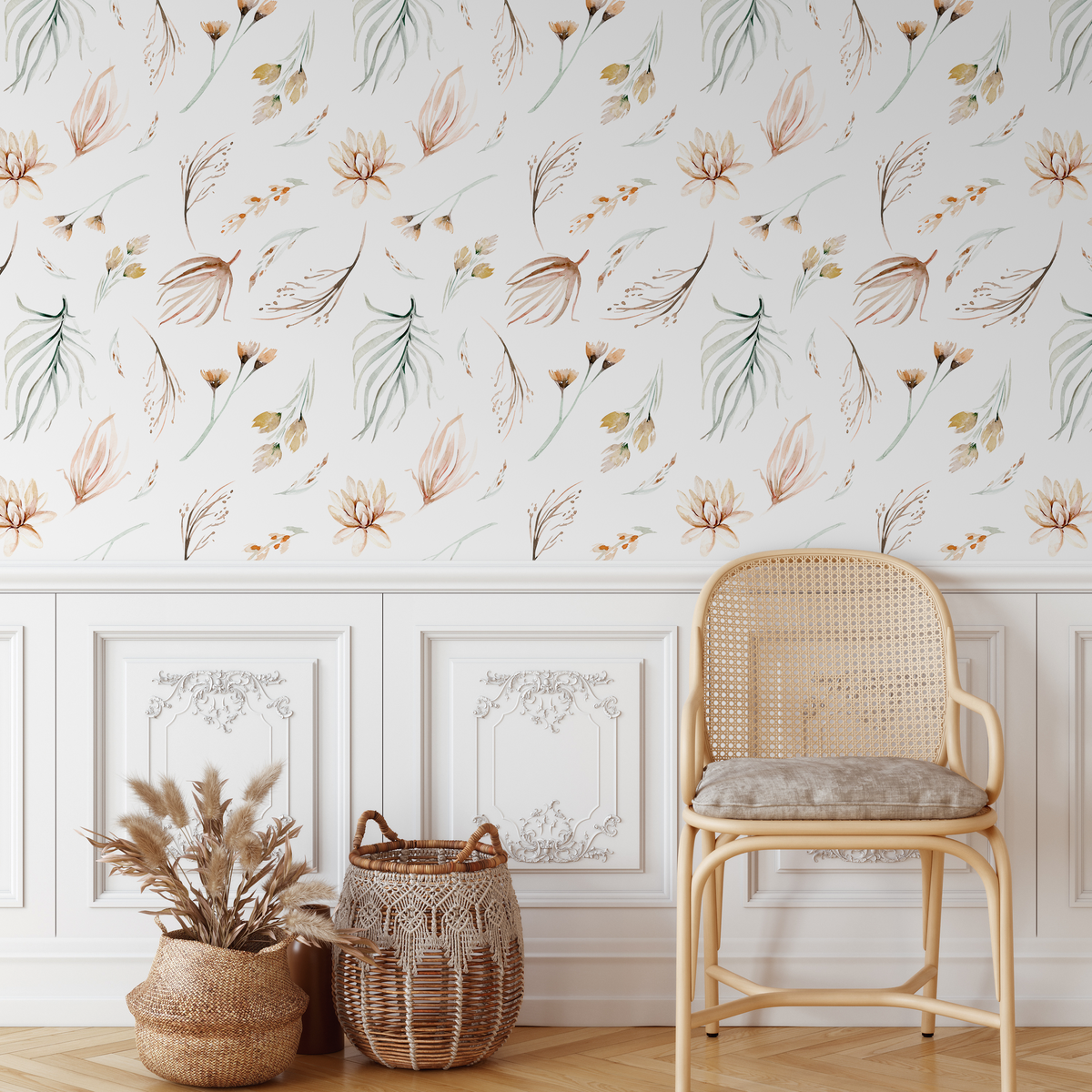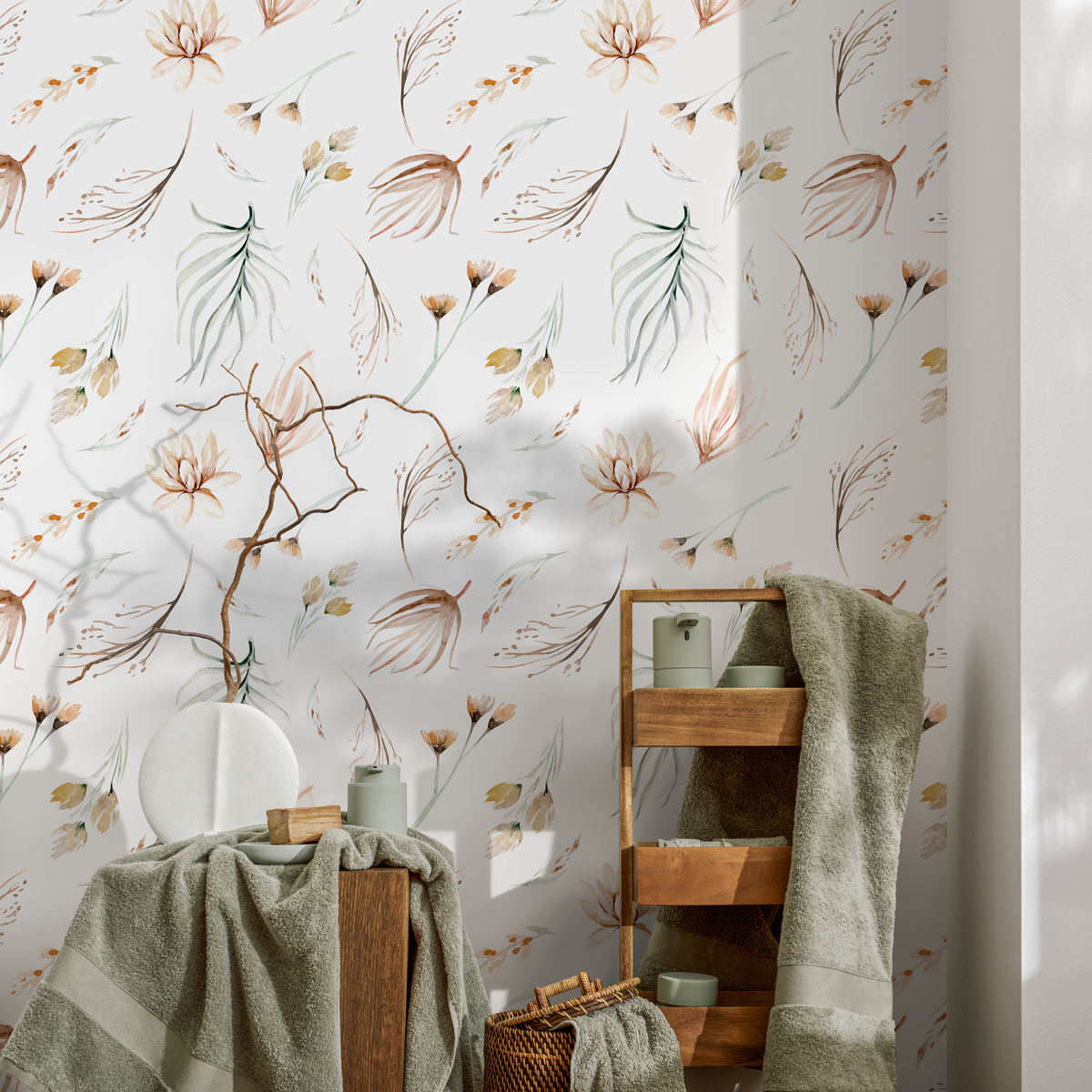 Papier peint amovible, papier peint adhésif, papier peint mural - Fleurs aquarelles - Feuilles aquarelles - B519