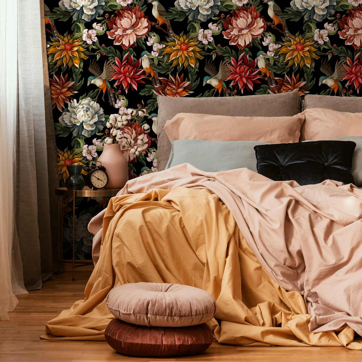 Papier peint vintage motif oiseaux et pivoines / Papier peint autocollant amovible Décoration d'intérieur Art mural Décoration murale Décoration de chambre - C727