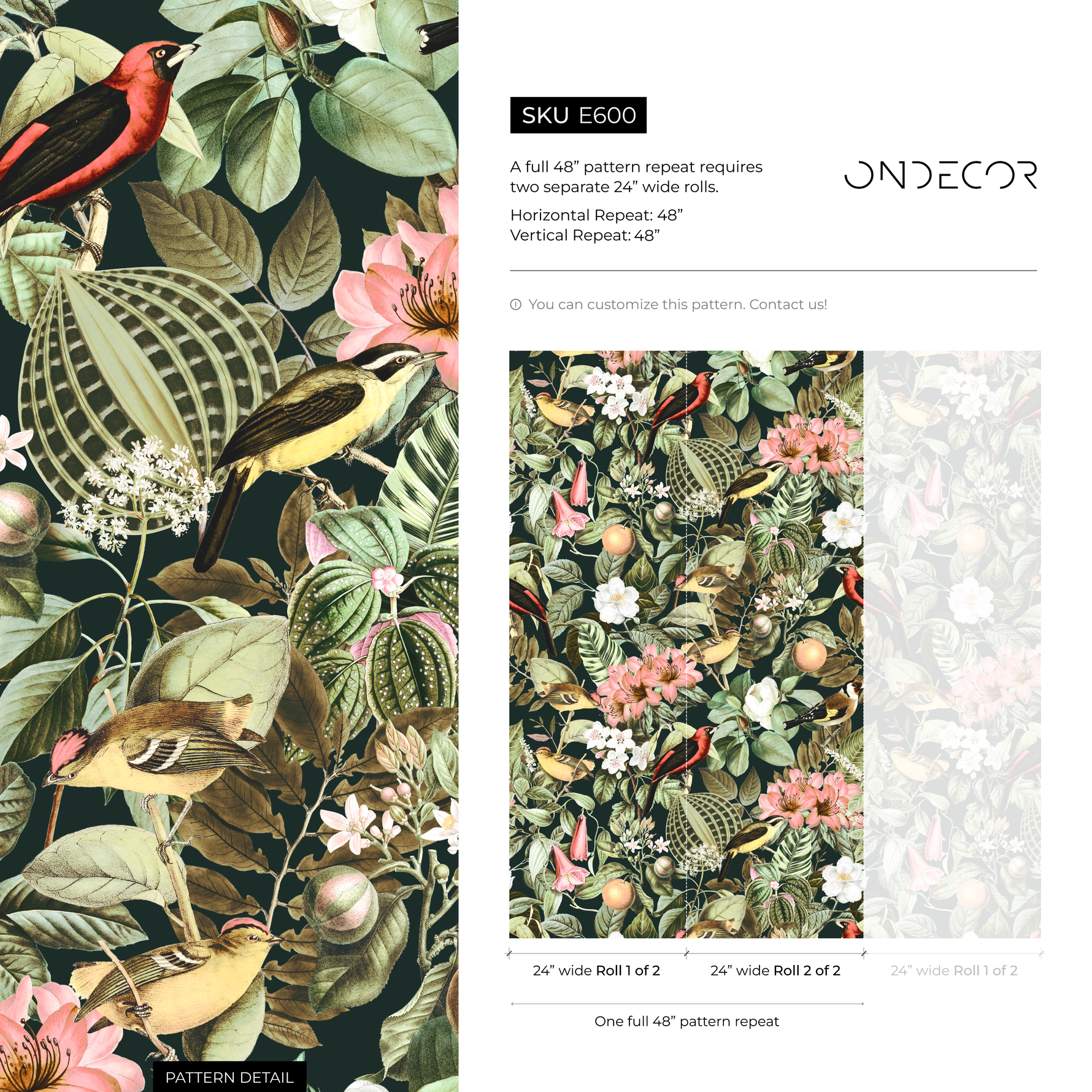 Transform your interior with this exquisite Botanical Wallpaper, a design that brings a lush, vintage-inspired garden into your home. Featuring a captivating pattern of exotic birds and vibrant flowers in rich shades of green, pink, and red, this wallpaper creates a stunning and immersive atmosphere. The detailed illustrations evoke a classic, artistic feel, making it the perfect choice for creating a dramatic accent wall or enveloping an entire room in natural elegance. Ideal for anyone seeking to elevate their home decor with a touch of sophisticated, nature-inspired wall art.