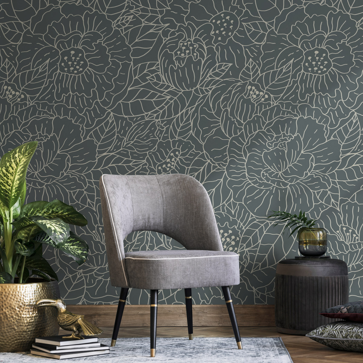 Papier peint à motifs floraux et feuillus foncés / Papier peint autocollant amovible Décoration d'intérieur Art mural Décoration murale Décoration de chambre - C954