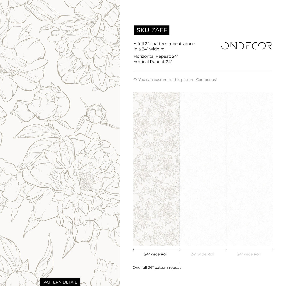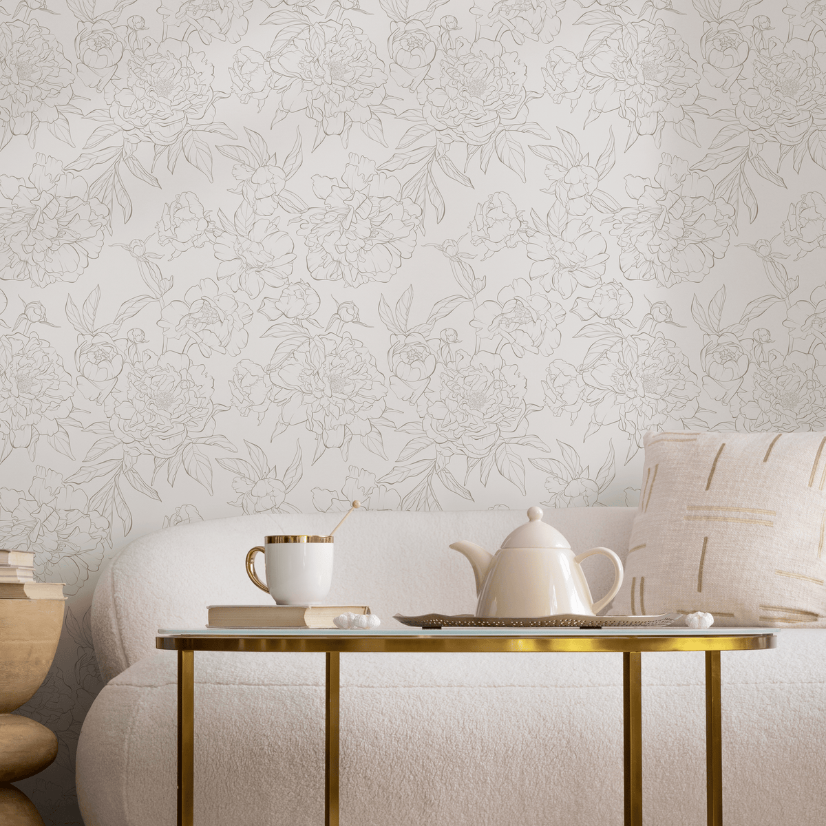 Papier peint minimaliste bohème léger à motif pivoine, autocollant, amovible, repositionnable, géométrique, minimaliste, abstrait - ZAEF