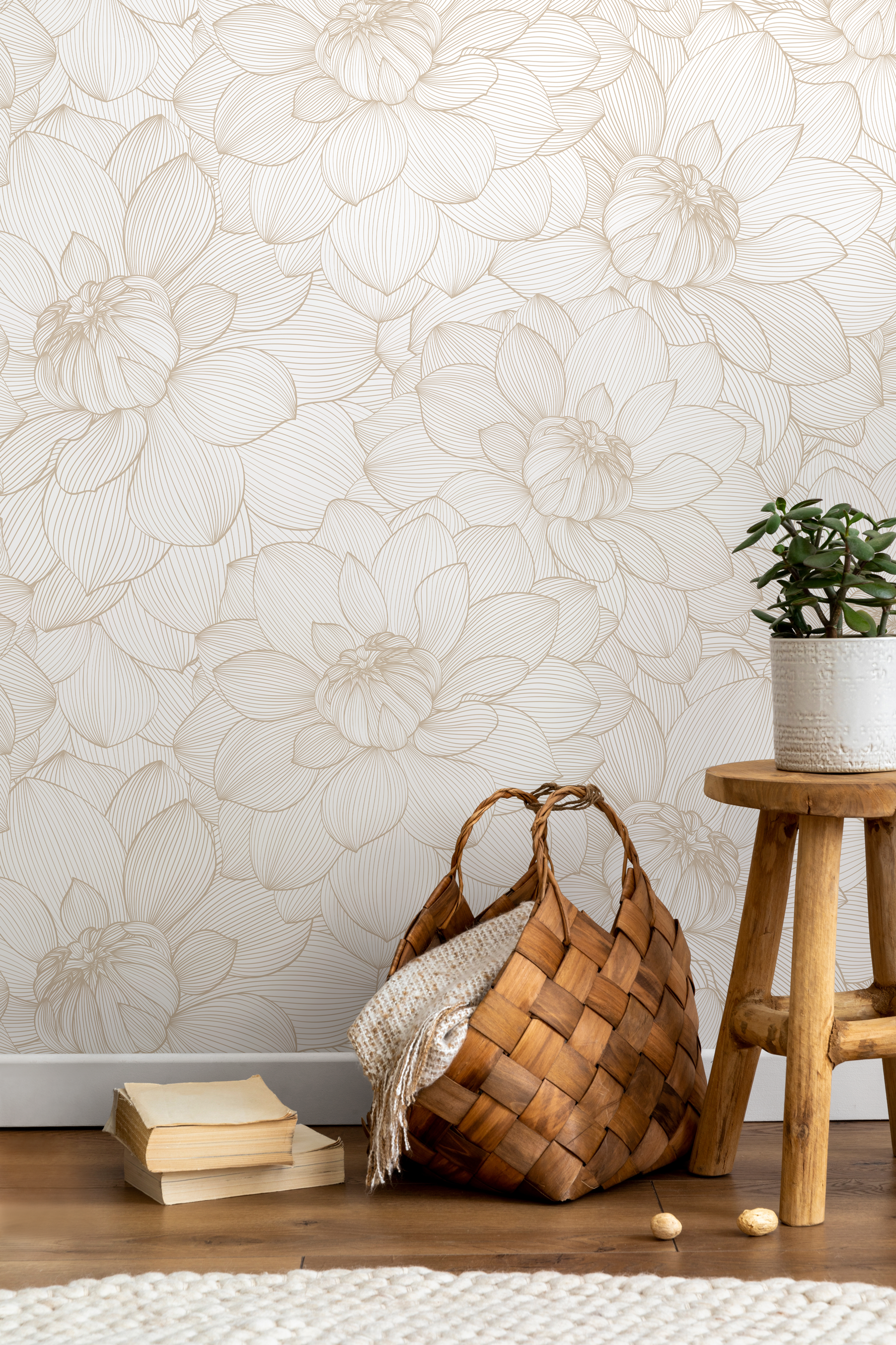 Papier peint floral pivoine neutre / Papier peint autocollant Papier peint amovible Décoration d'intérieur Art mural Décoration murale Décoration de chambre - D144