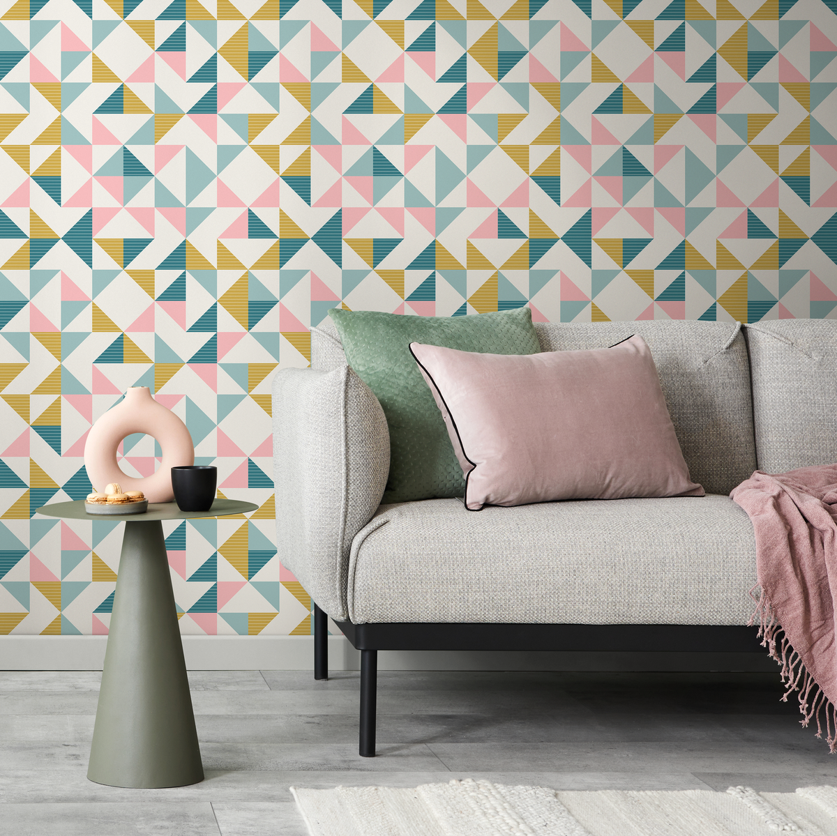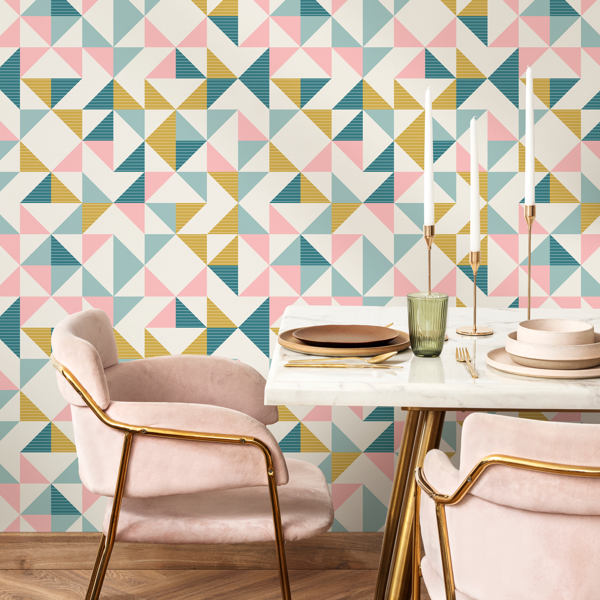 Papier peint autocollant amovible, décoration murale, décoration d'intérieur, art mural imprimable / Triangles géométriques colorés - C107