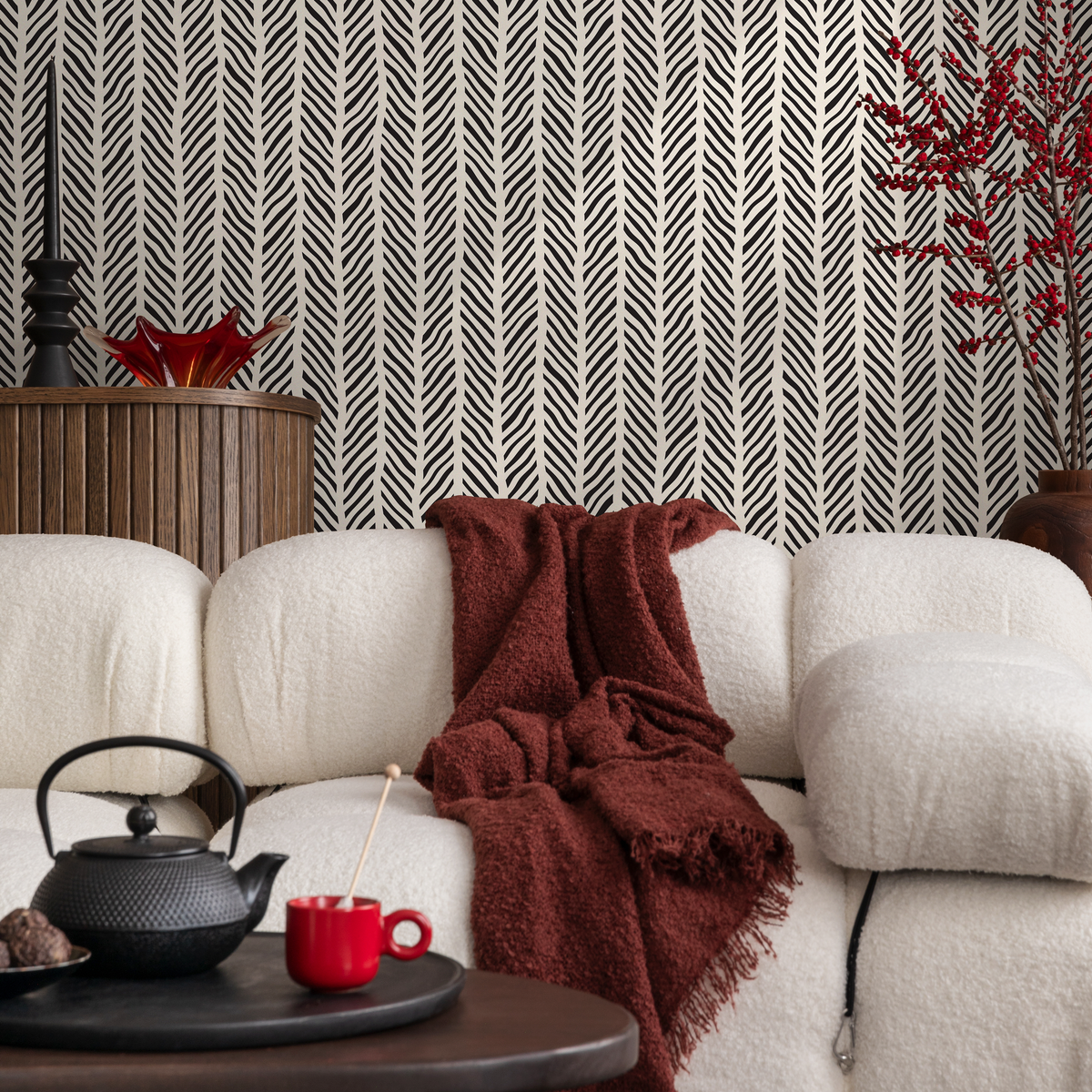 Papier peint autocollant amovible, décoration d'intérieur, art mural, décoration de chambre / Papier peint à chevrons noirs - C313