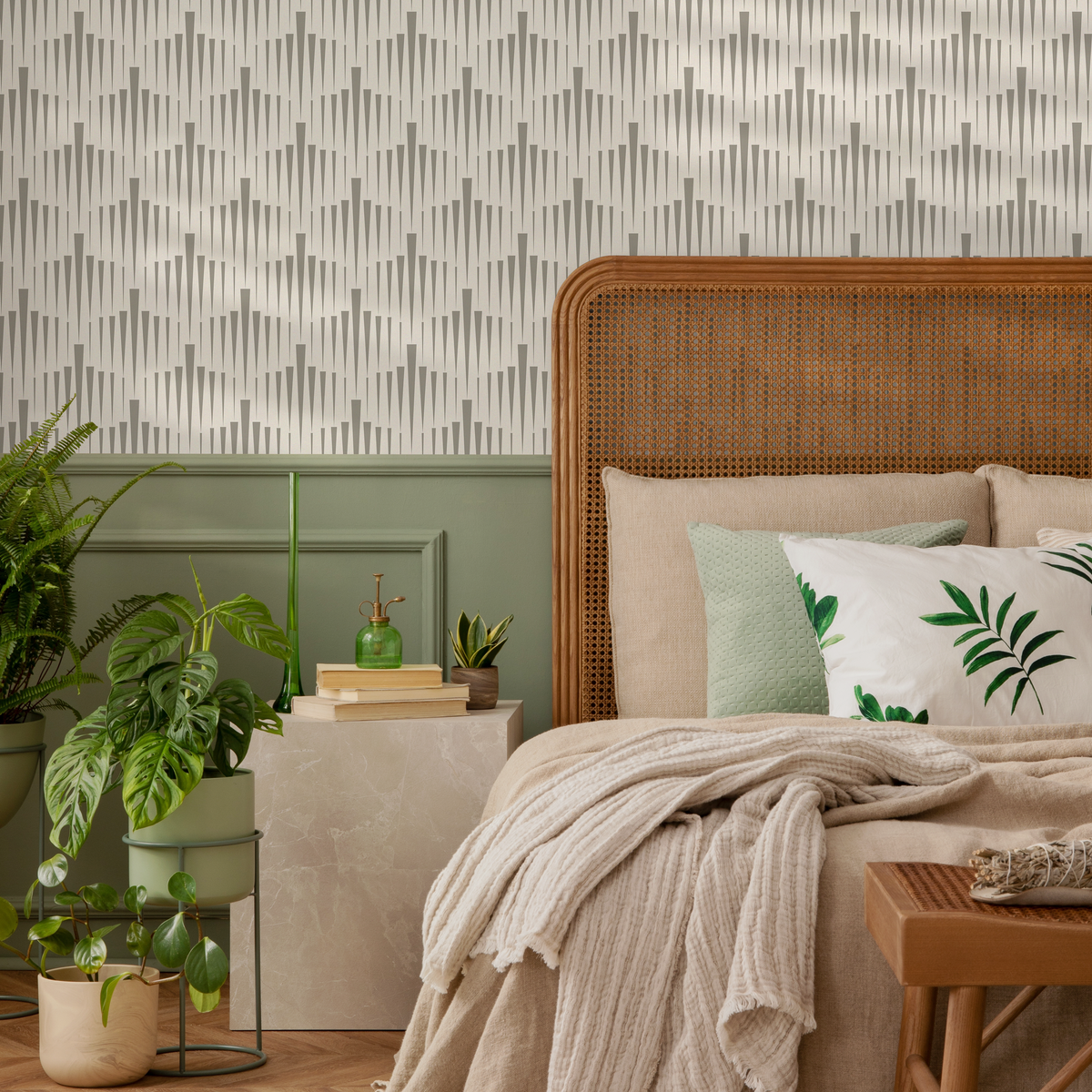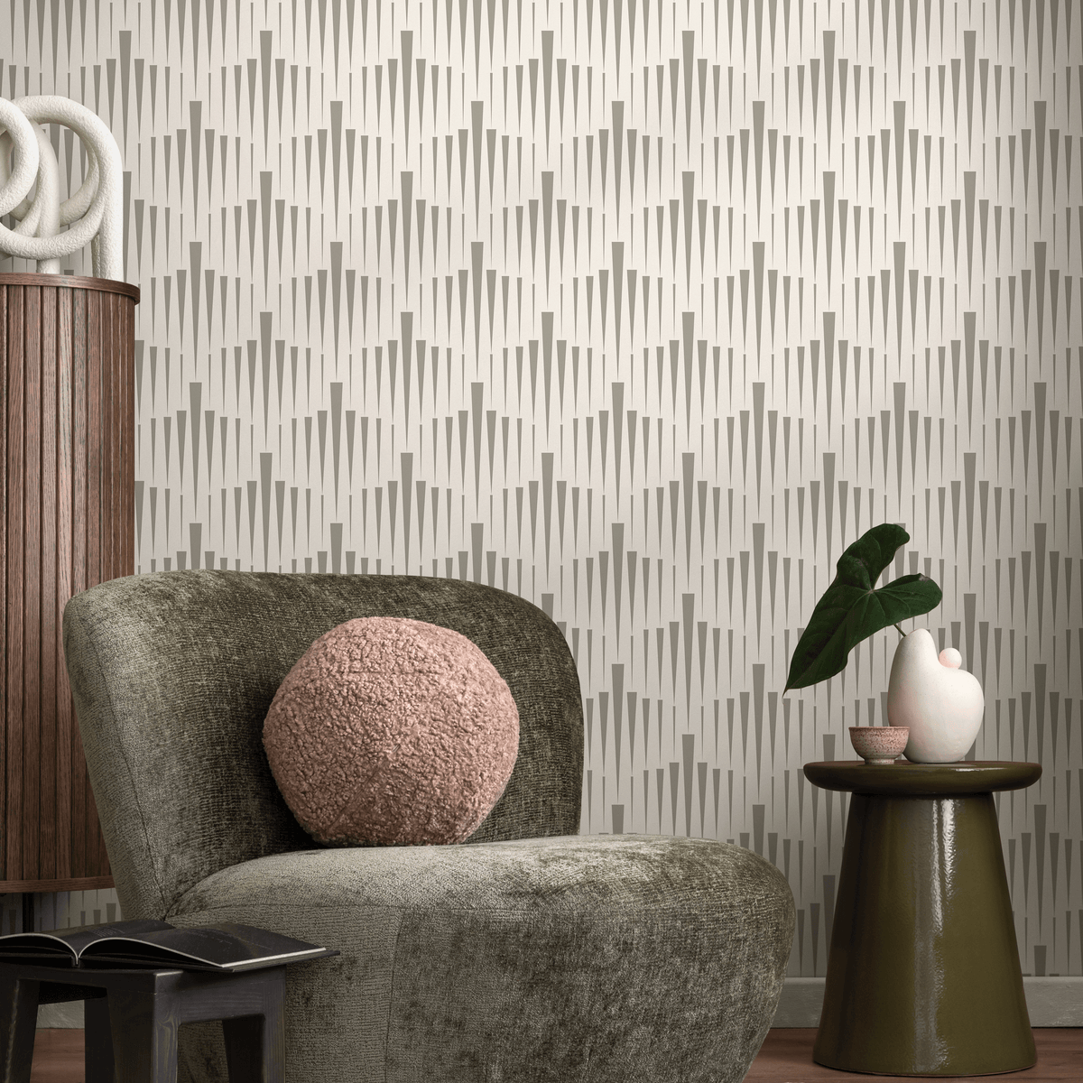 Papier peint autocollant amovible, décoration d'intérieur, art mural, décoration murale, décoration de chambre / Papier peint géométrique blanc et beige - C559