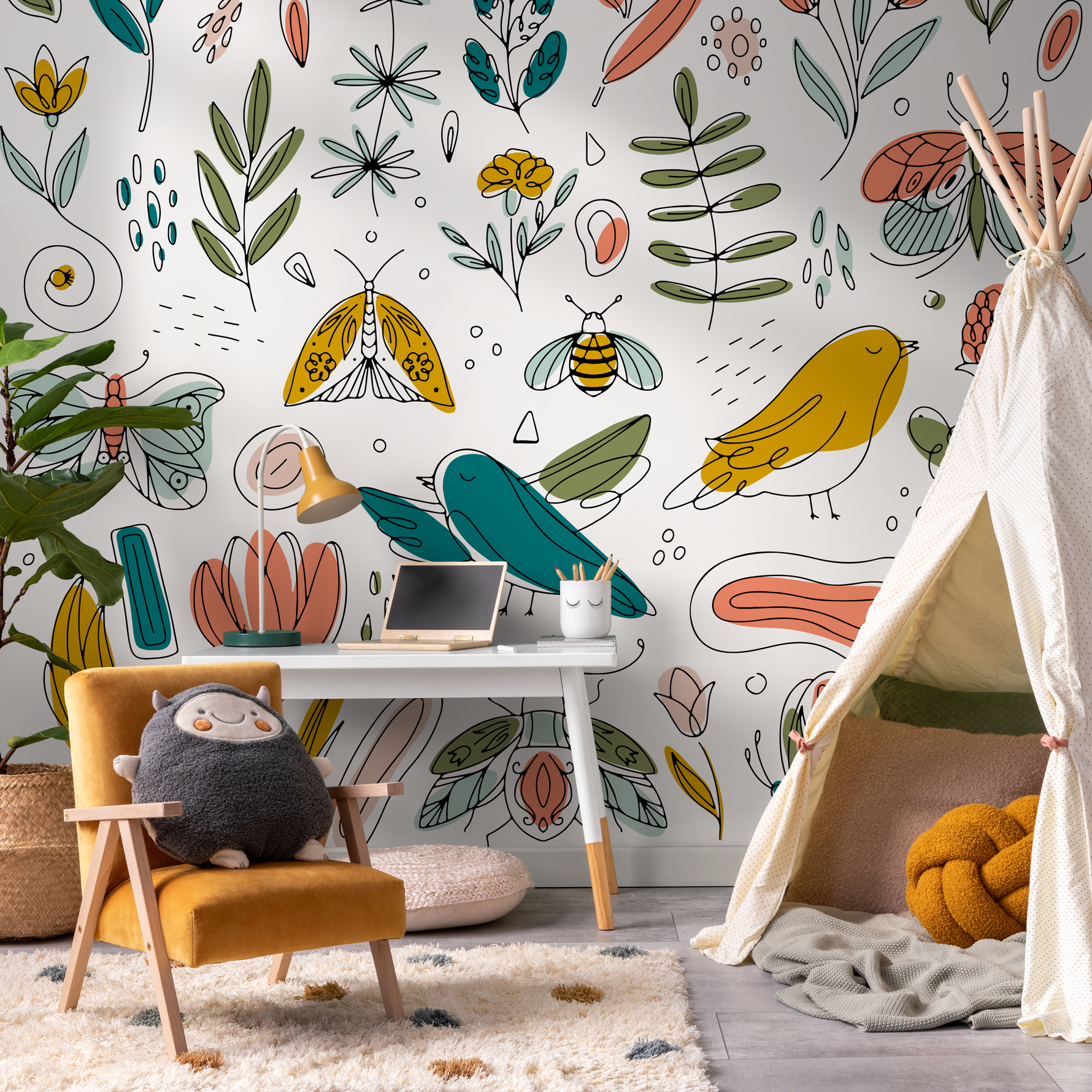 Papier peint autocollant amovible, décoration d'intérieur, art mural, décoration de chambre / Papier peint mignon à motifs floraux et papillons - B982