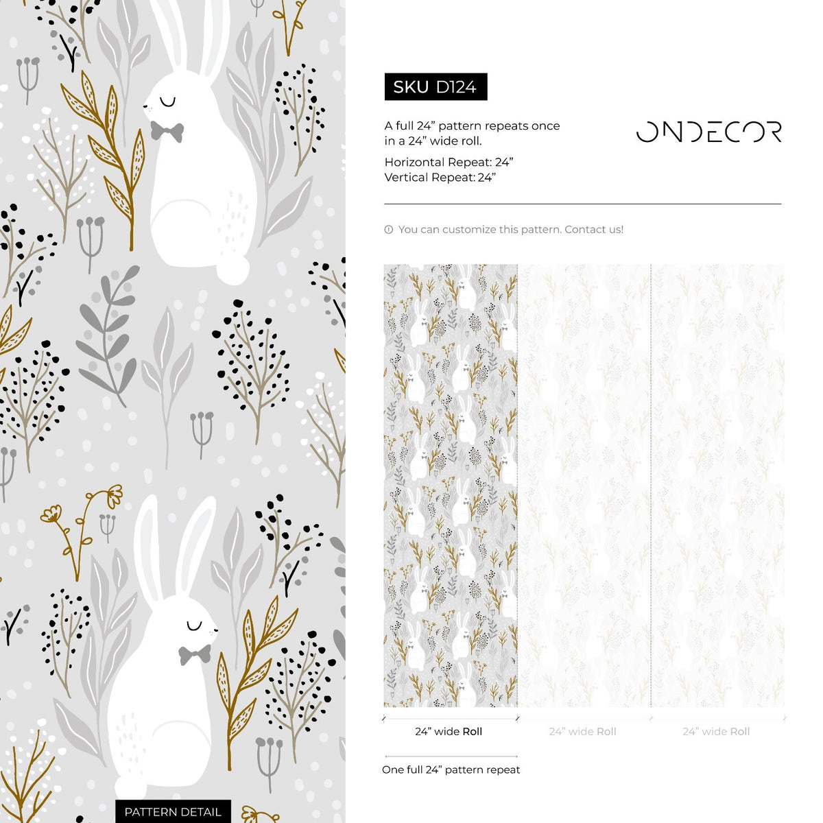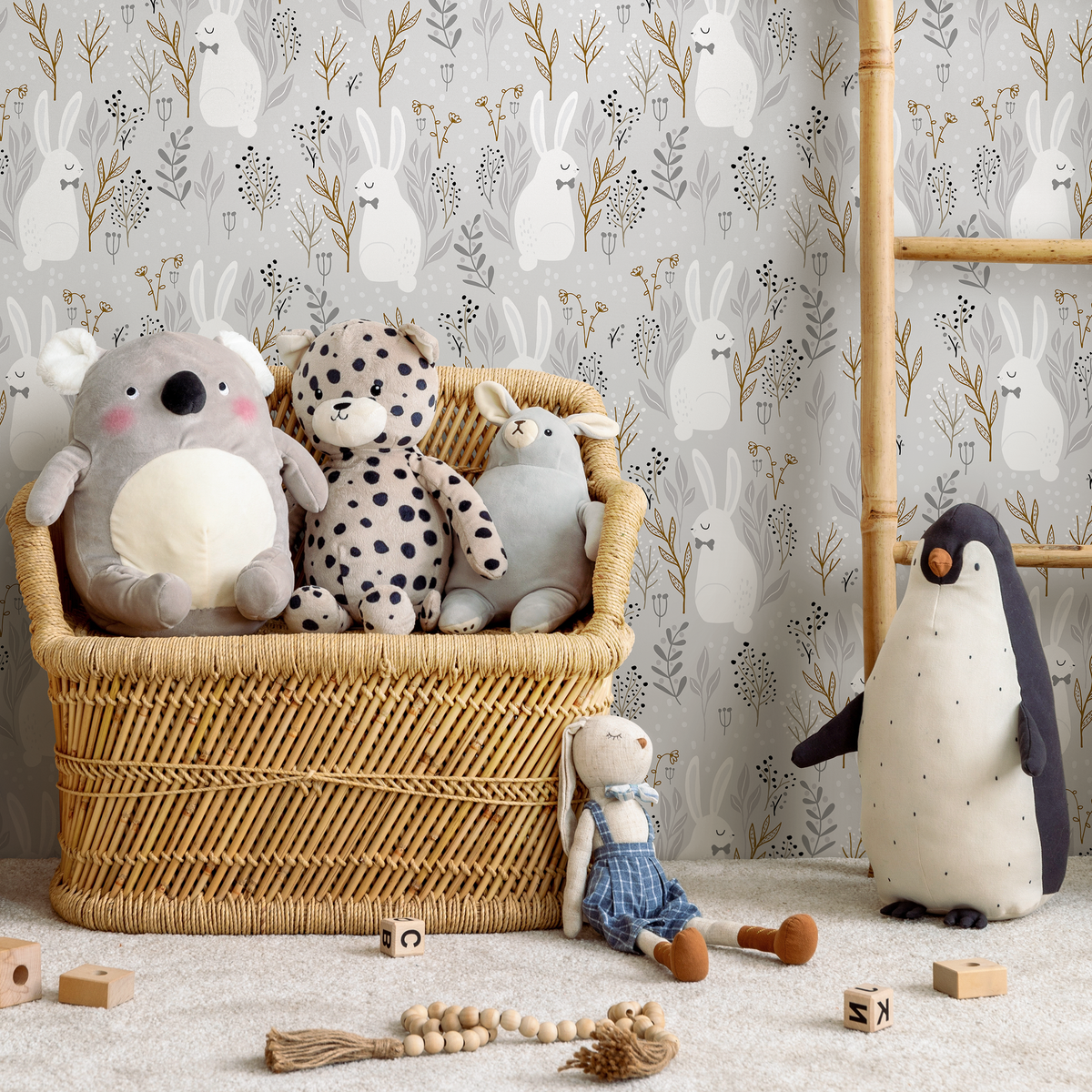 Papier peint autocollant pour chambre d'enfant Motif lapin gris - D124