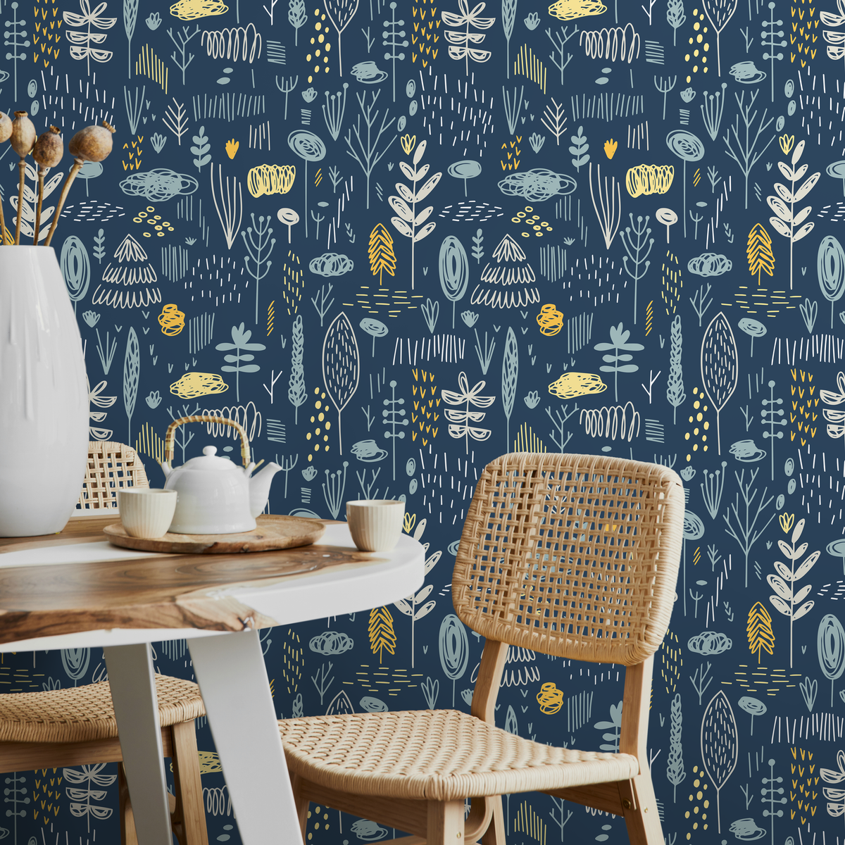 Papier peint amovible, papier peint scandinave, papier peint à motifs végétaux, papier peint autocollant - A857